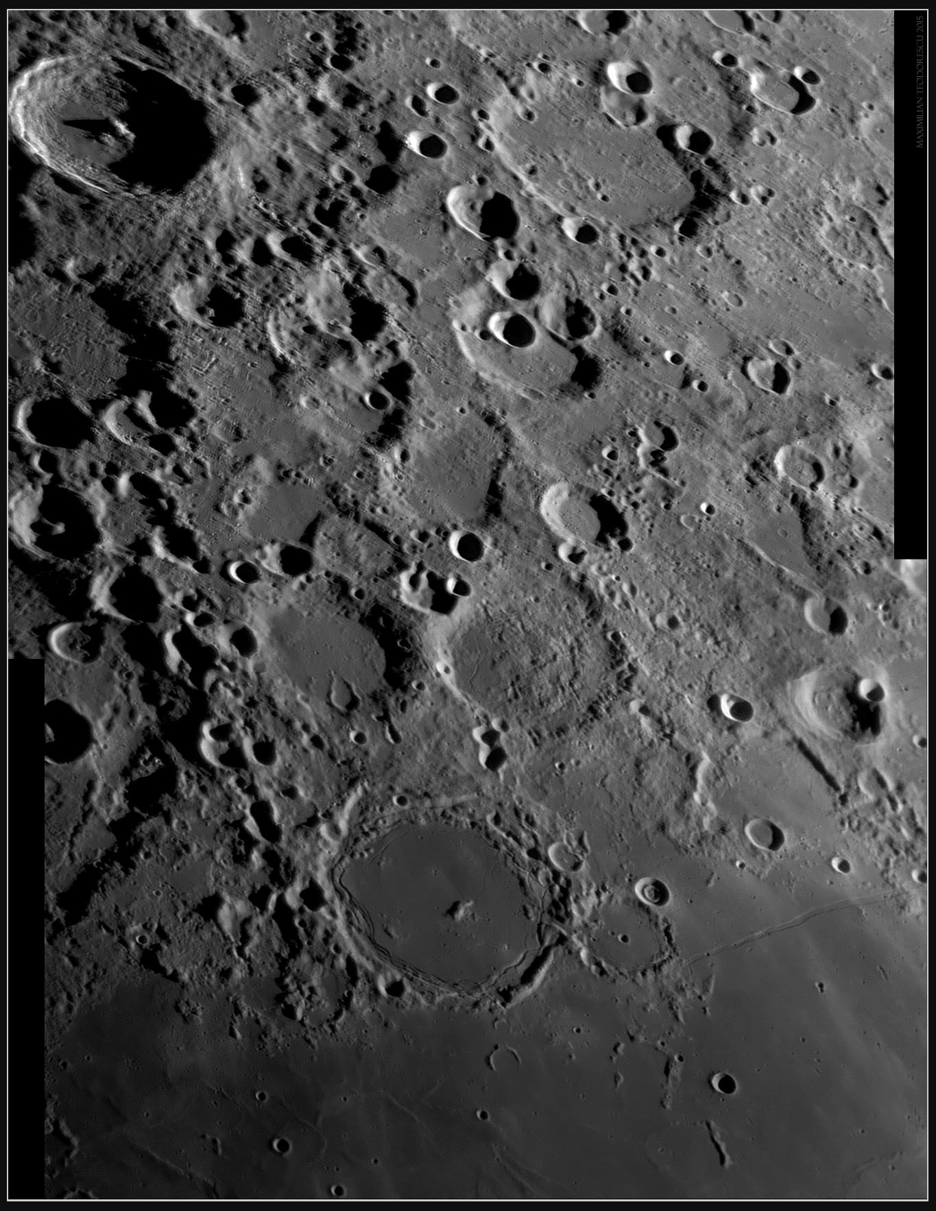 The South Pole was as always a superb sight with a lot of shadow-filled craters and mountains. The largest shadow-filled crater in the image is Moretus: