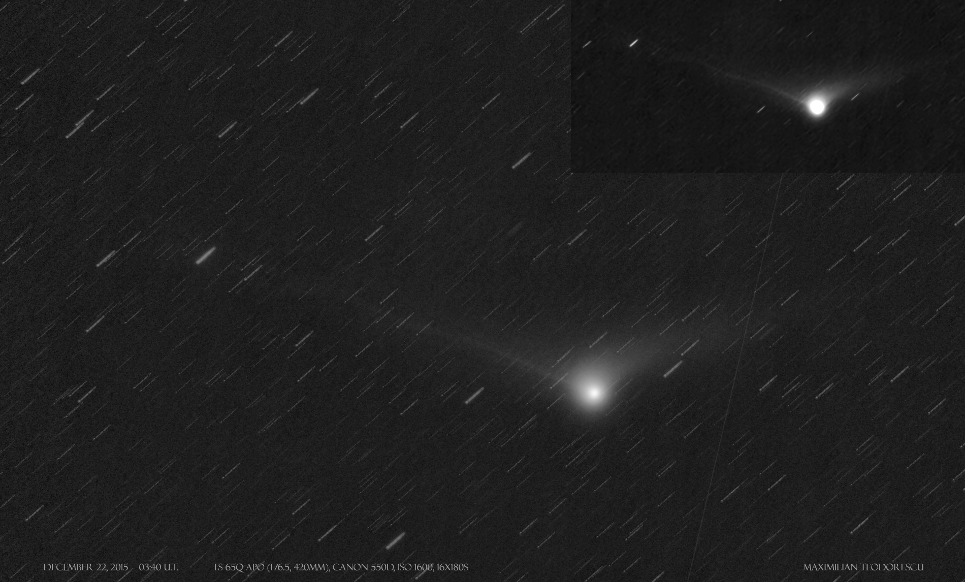Just finished processing a very fresh image of comet C/2013 US10 (Catalina) acquired at -3 degrees Celsius with the small 65mm refractor. It may not be the final result, but I don’t have the time for now to do a nice processing.