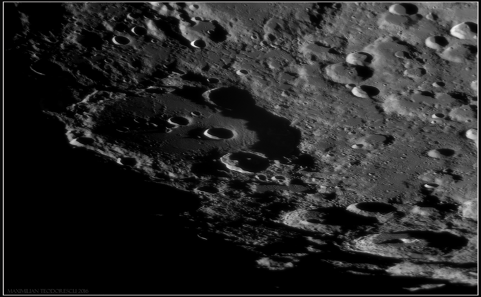 This results are from a session that was almost stopped due to poor seeing conditions. I think I’ve said to myself that night a few times “maybe it will get better in a few more minutes”, but that never happened. Nevertheless I was able to extract something from the many (130 Gb) files acquired. The setup was composed from the 355mm F/5 Newtonian, the ASI 174MM with a Red filter for the Moon shots, and the RGB filters for Jupiter, and some Barlow lenses in between (a TV 2X Powermate and a Baader 2.25x one). Seeing was “stable” for the entire session, at around 5/10, with a staggering maximum of around 7/10 for a few seconds…