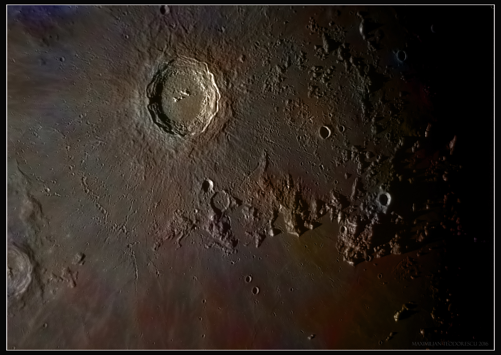 The second and third shots were acquired on March 18, 2016, using the 355mm Newtonian under poor seeing conditions. The color data added onto the Copernicus image was extracted from this mosaic.