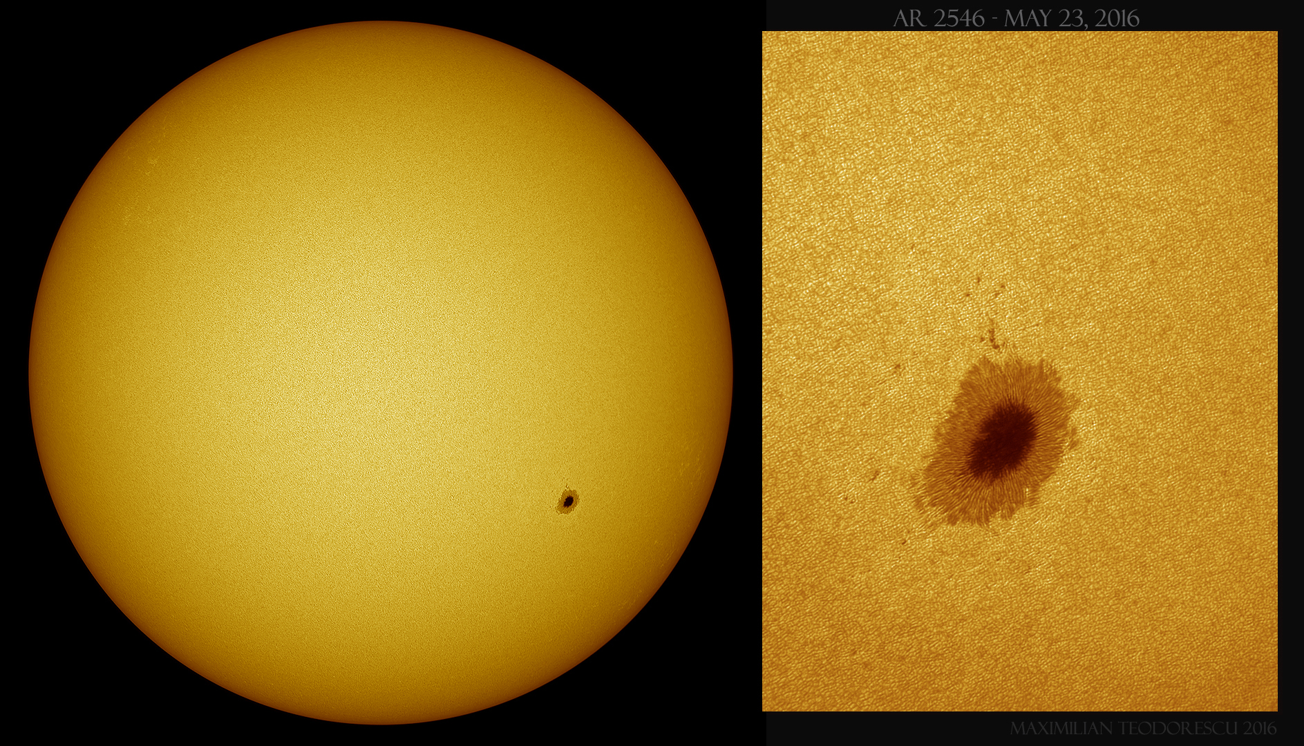 A few shots presenting giant sunspot AR 2546 as it nears the solar limb. Images acquired with the 8 inch Newtonian and ASI 174MM camera, under medium seeing conditions (with a few seconds of very nice seeing).