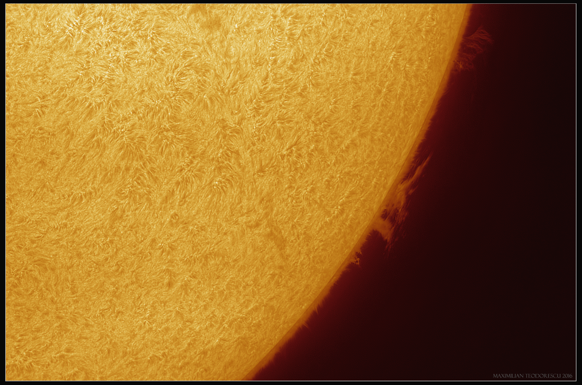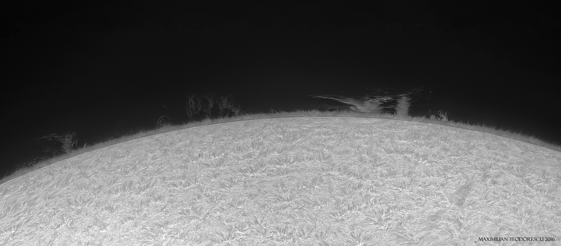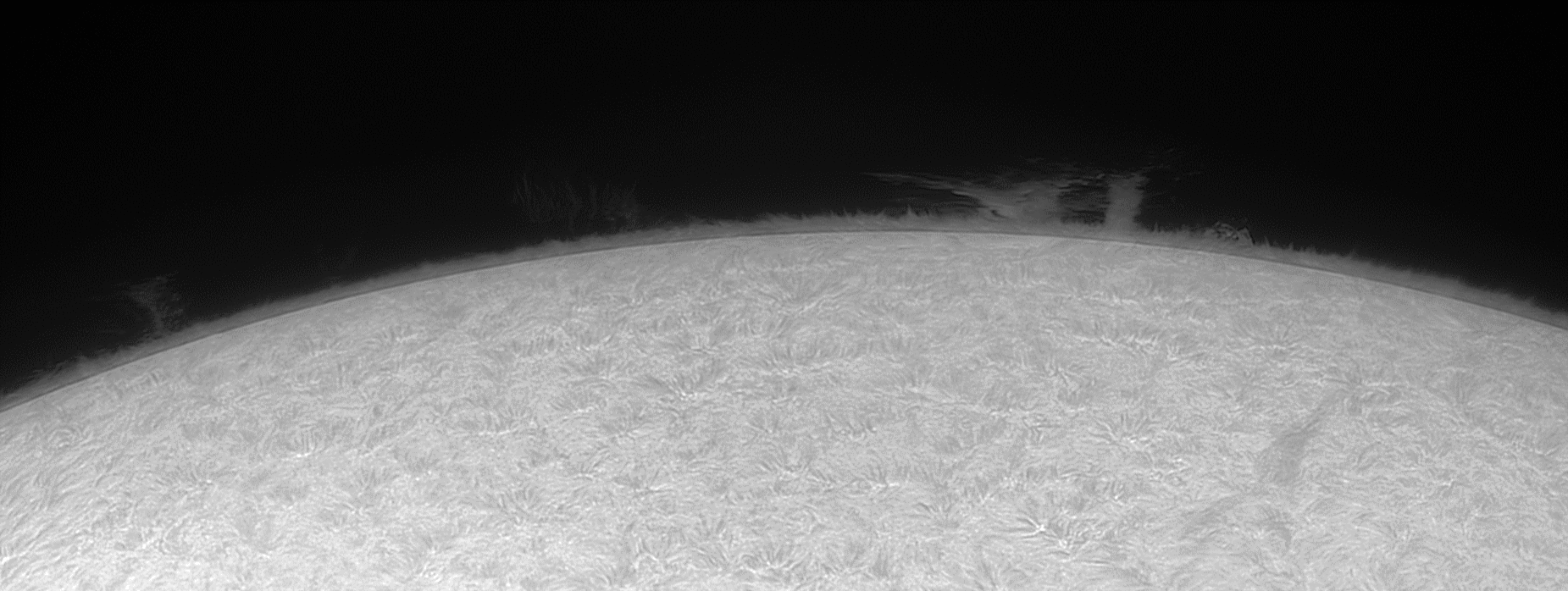 Equipment: TS 115mm F/7 APO Refractor, Quark Chromosphere H-alpha filter, Baader UV/IR cut filter, ASI 174MM camera. 700 out of 4000 frames. Seeing 5/10.