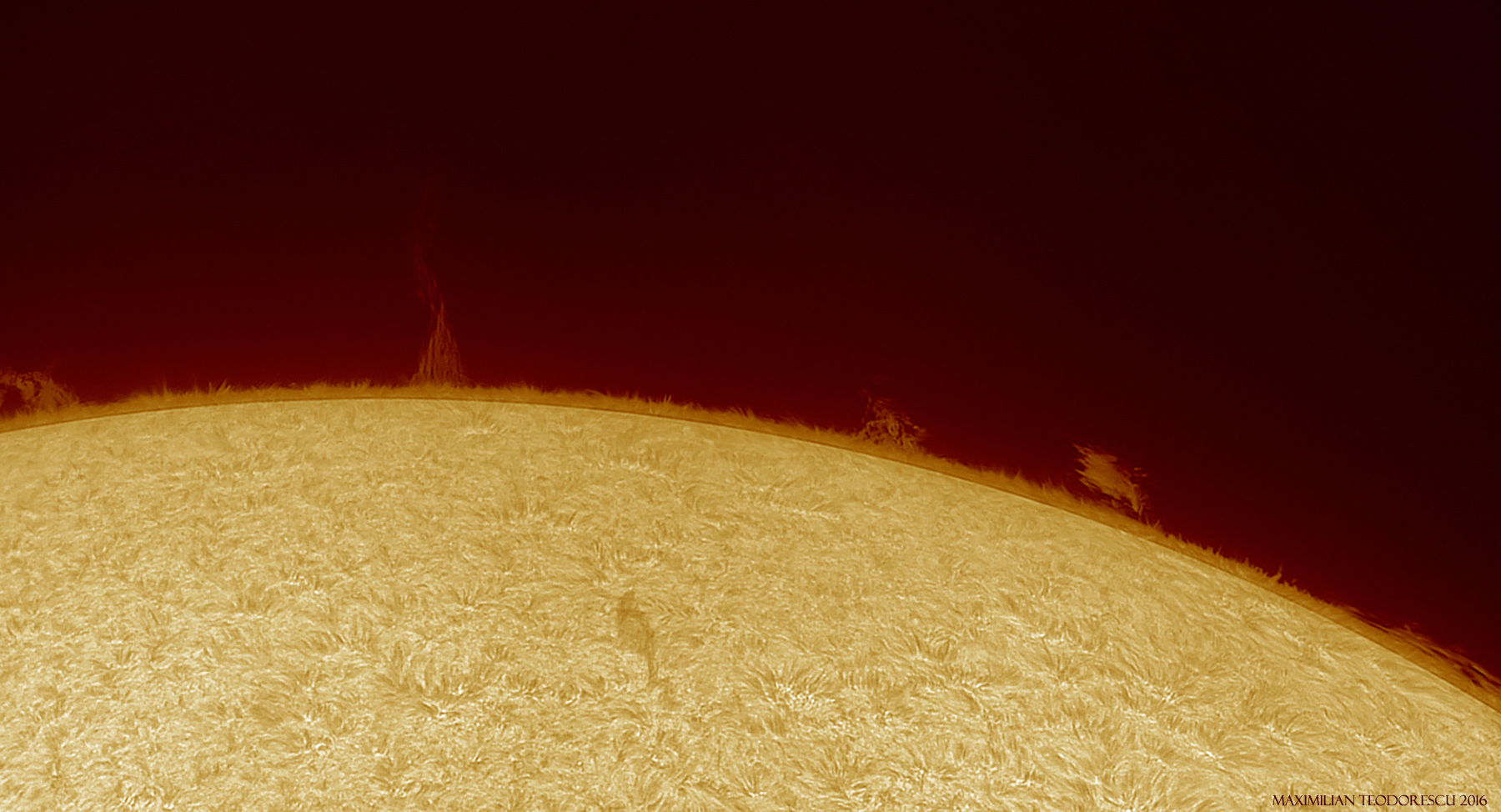 The equipment: TS 115mm F/7 APO Refractor, Quark chromosphere H-alpha filter, Baader UV/IR cut filter, ASI 174MM camera.