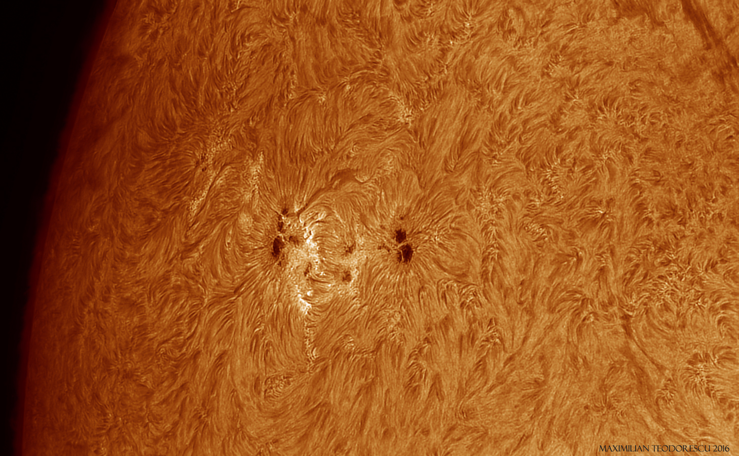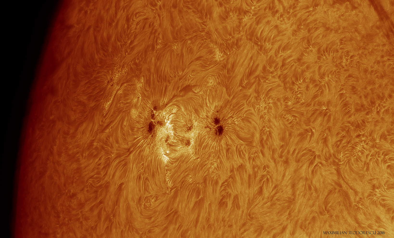 Sunspot group 2585 is a nice active region with the group evolving in a matter of minutes. Following are a few shots from today, under poor to good seeing conditions (fast changing conditions). A short animation will follow, as soon as I get the time to process it.