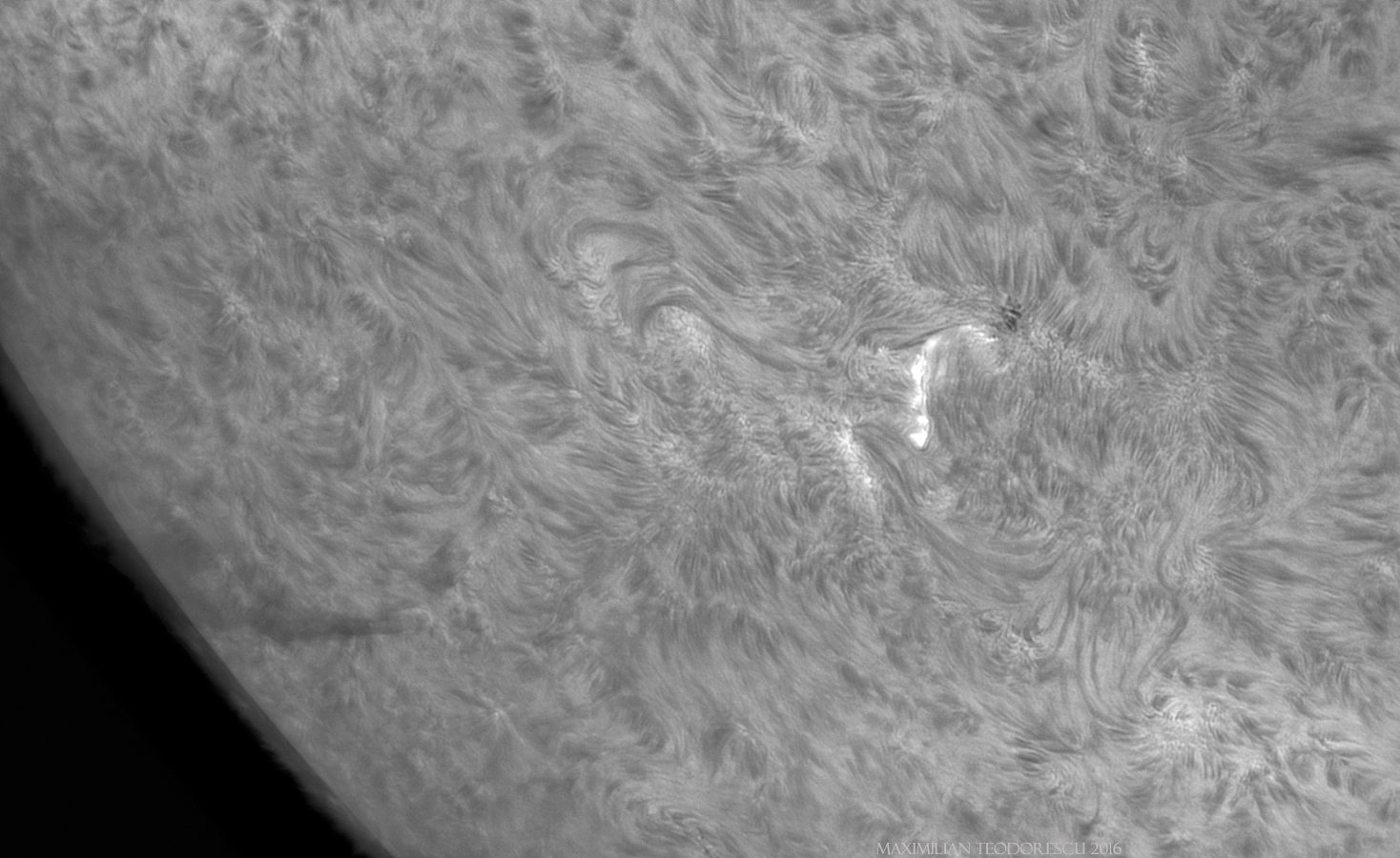 A few shots in H-alpha light that present a small flare and an interesting prom on the limb. The small flare occurred in AR2592. The seeing was not good, but it did allow some images.