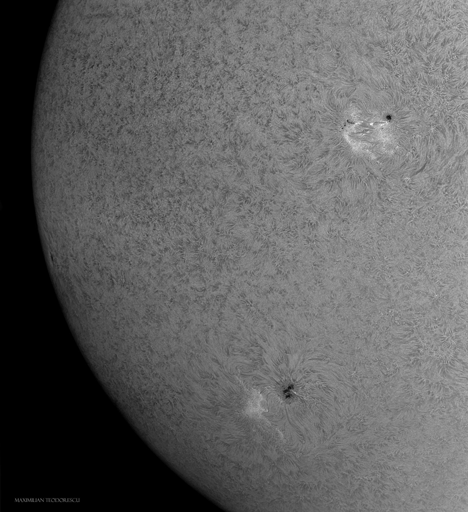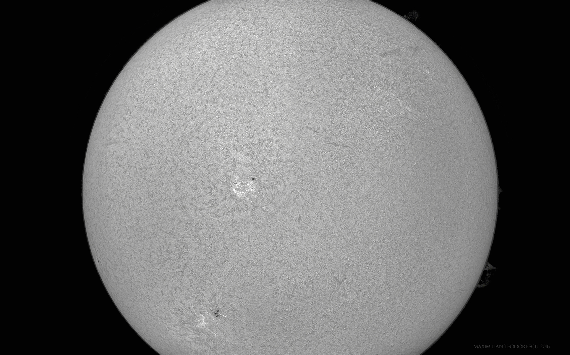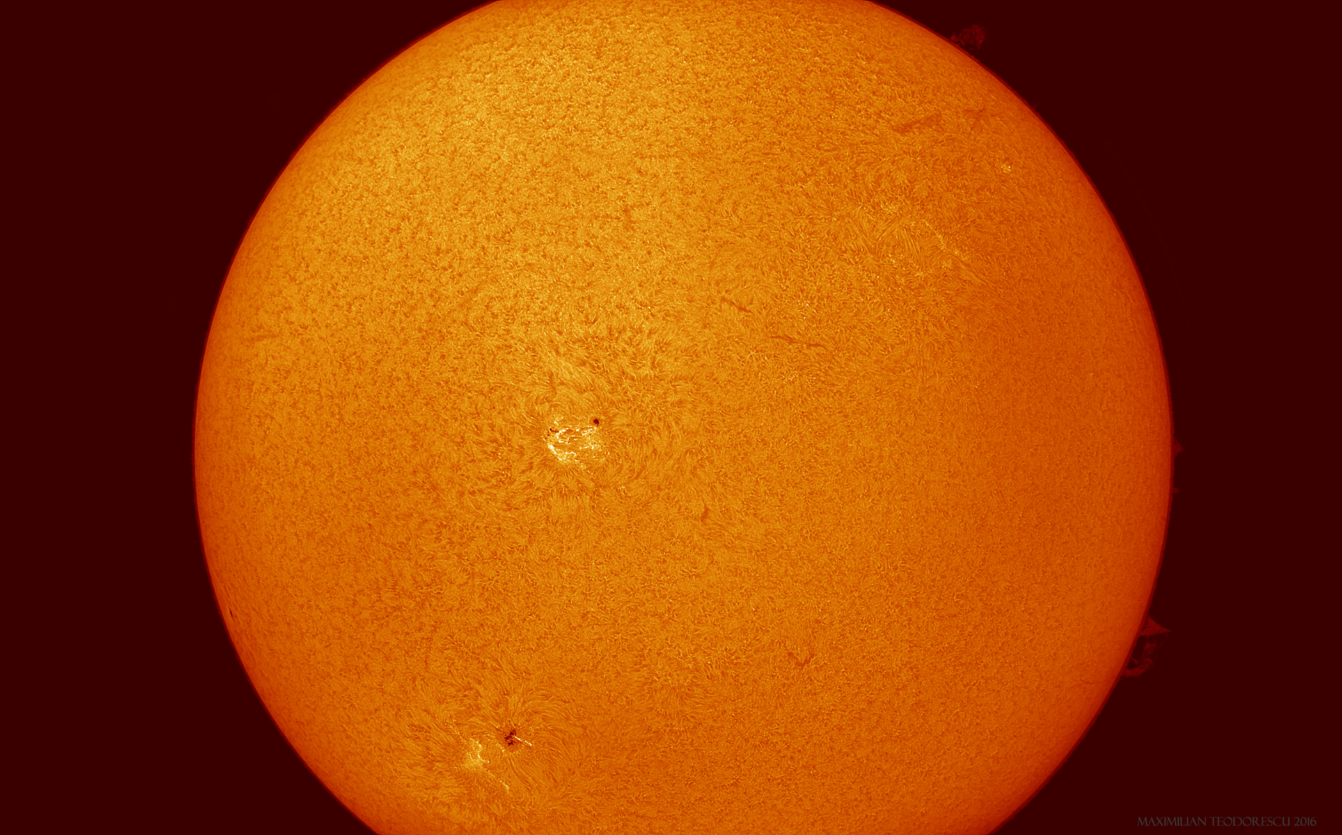 Playing a bit with the small 65mm refractor and H-alpha filter today. The Sun was at only 35 degrees altitude at the time I’ve acquired the images, but the active regions present were nicely visible despite the poor seeing.