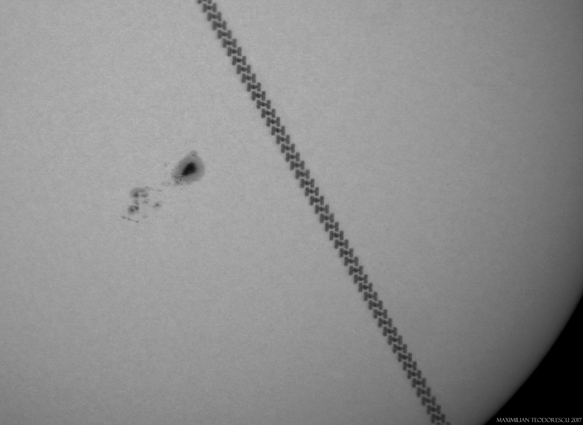 A lucky transit of the ISS occurred over my home. Only a fast setup of the astro gear was required for this event.