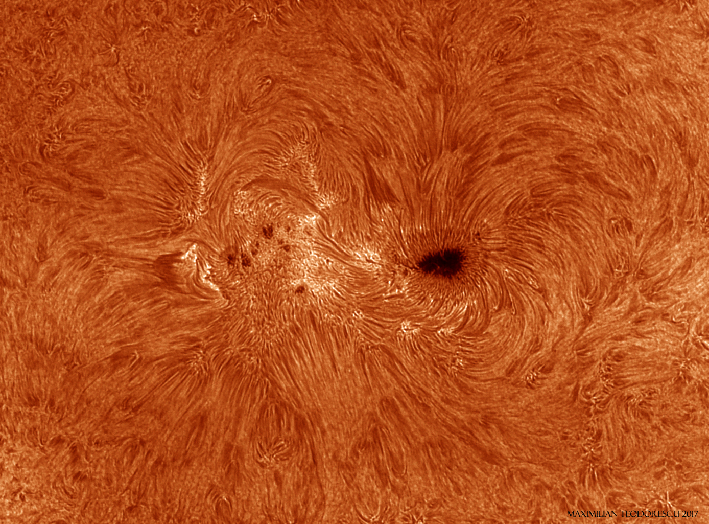 The setup: TS APO 114mm, F/7, with the ASI 174MM camera. The Herschel wedge for White Light, and the Quark Chromosphere for H-alpha. Good seeing.