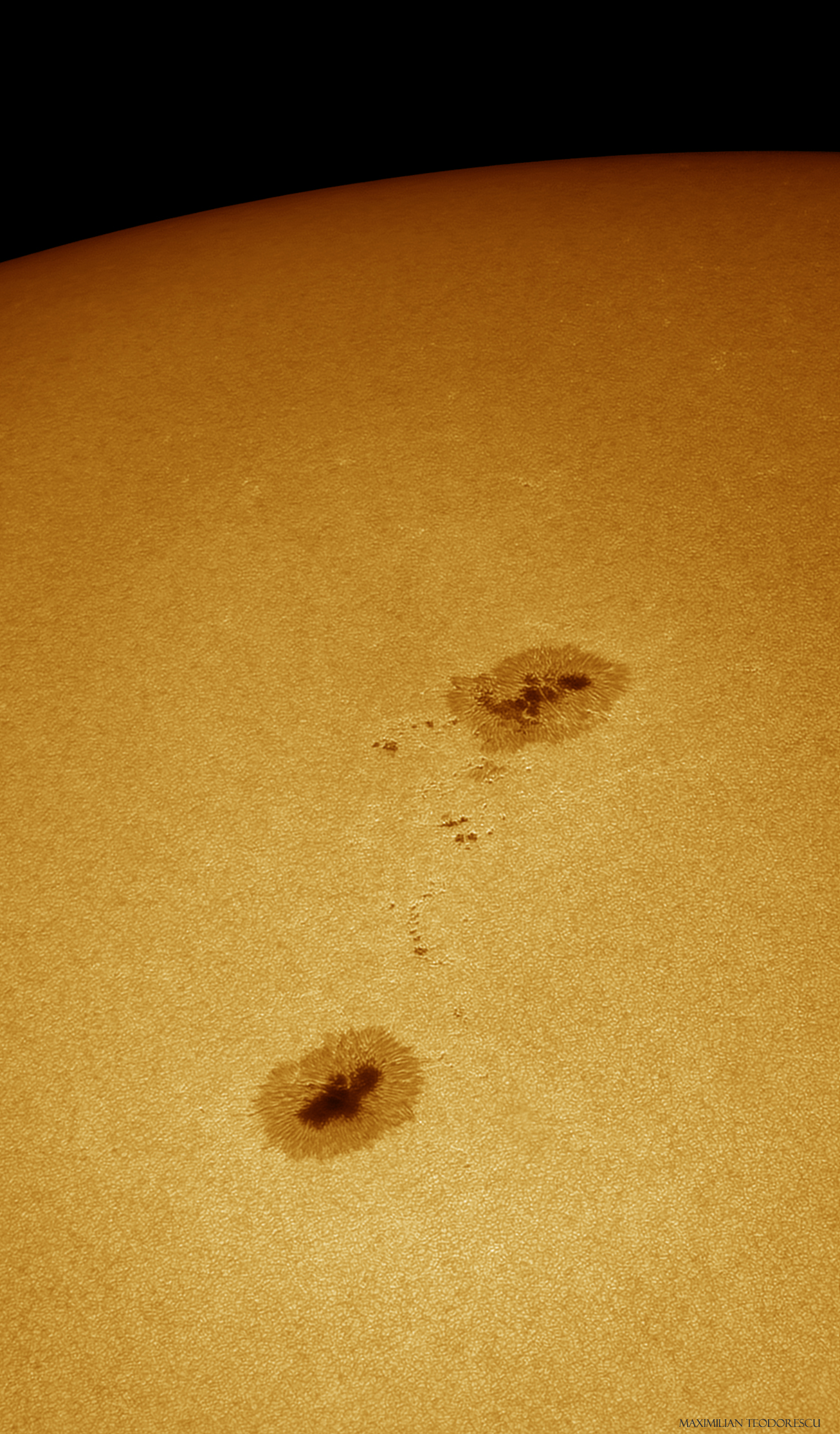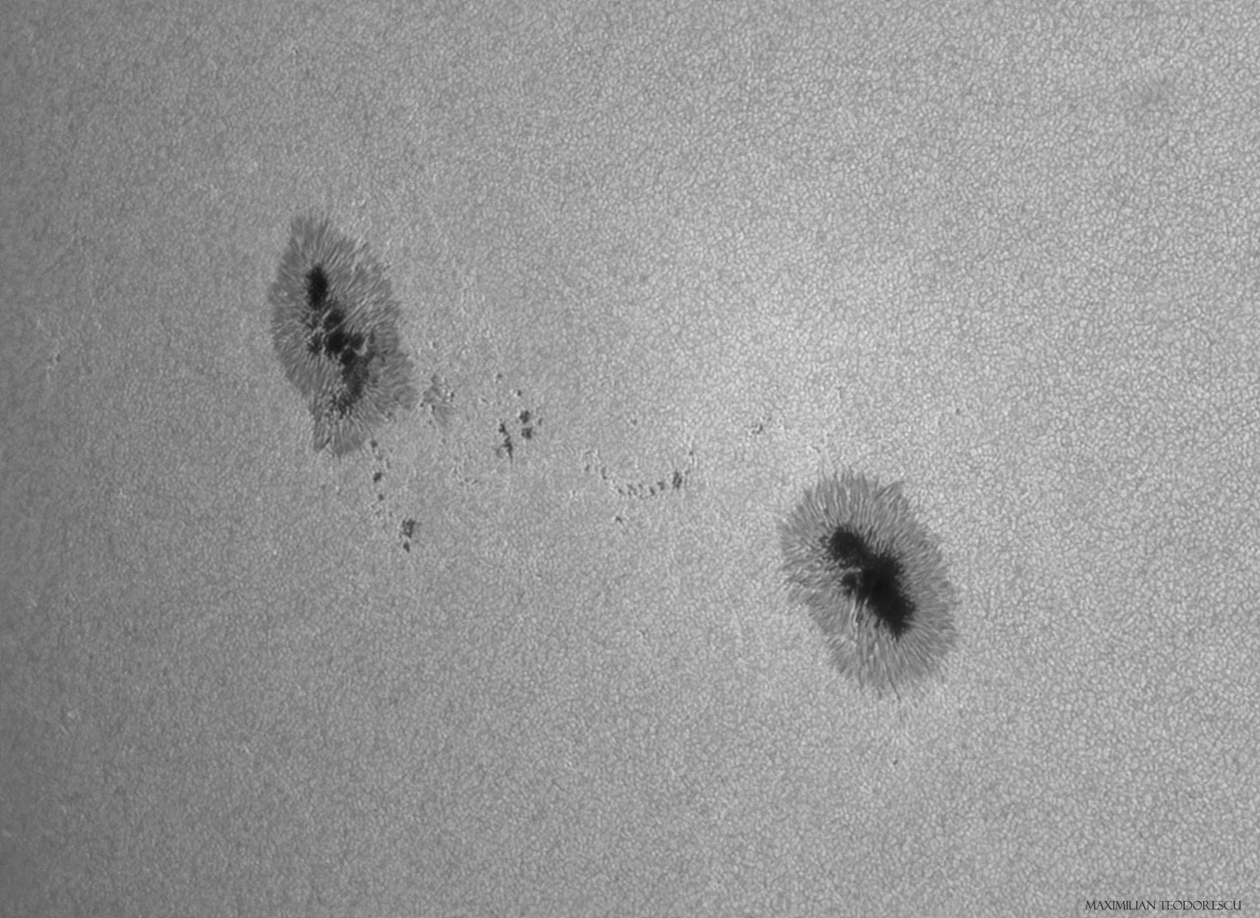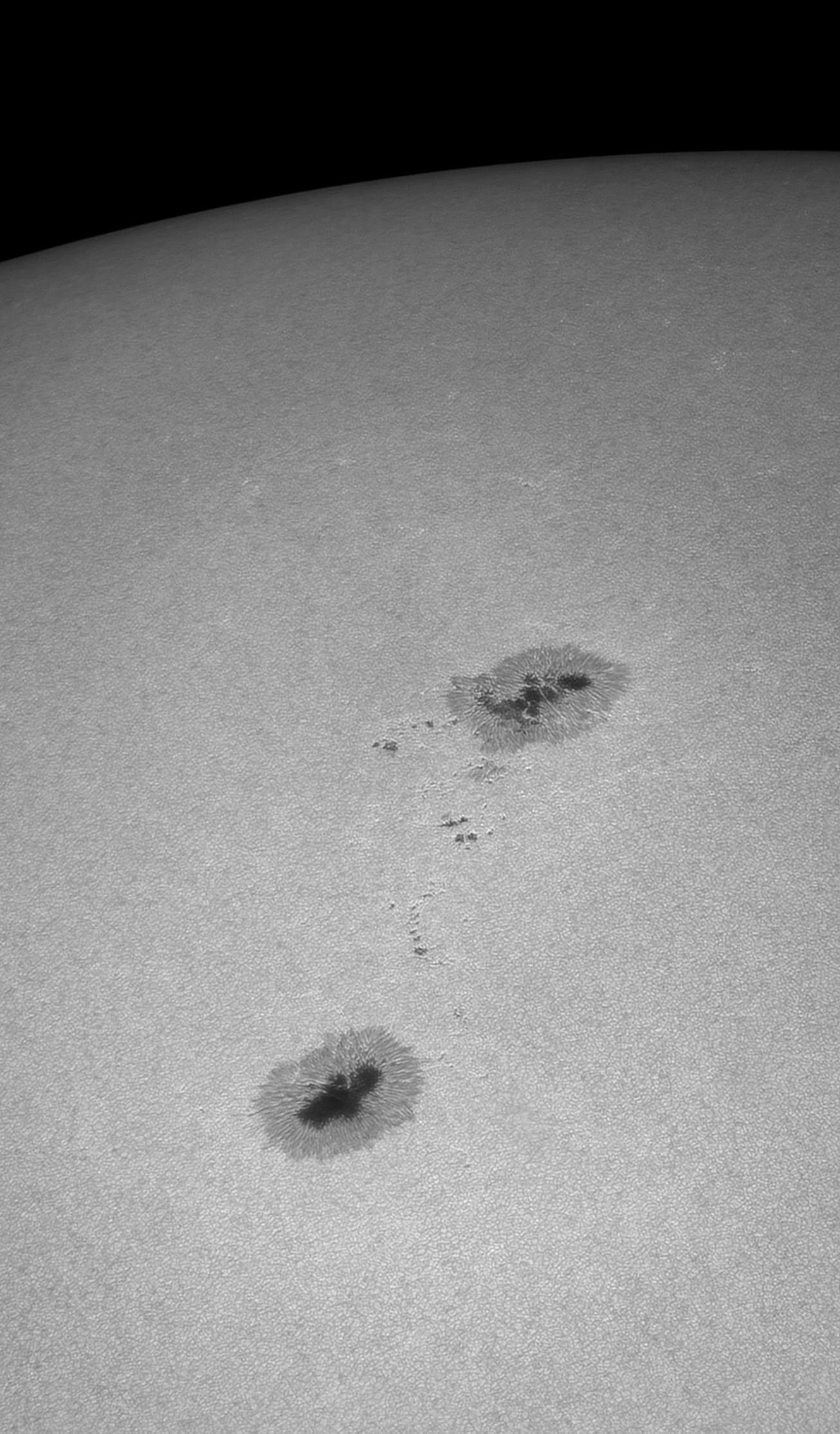 Setup: 200mm F/5 homemade Newtonian, ASI 174MM, Baader red filter, Full aperture Astrosolar filter. Seeing 5-6/10.