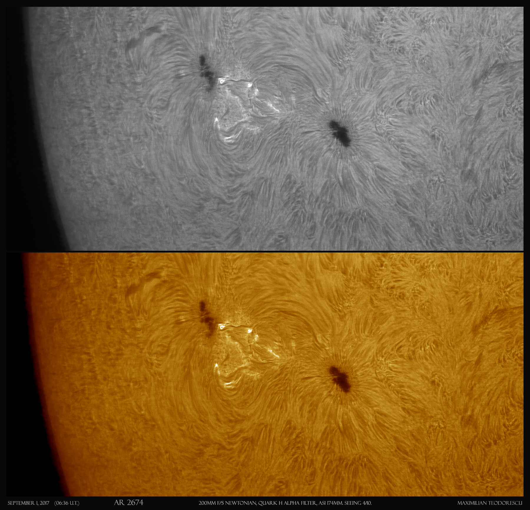 A new session with AR 2674 under average seeing conditions. This session was performed with the 200mm Newtonian in the morning, with slightly less turbulence compared to the evening sessions; a good test run for a future session with the big scope, the 355mm Newtonian.