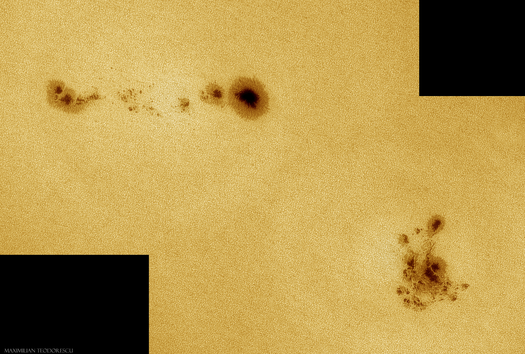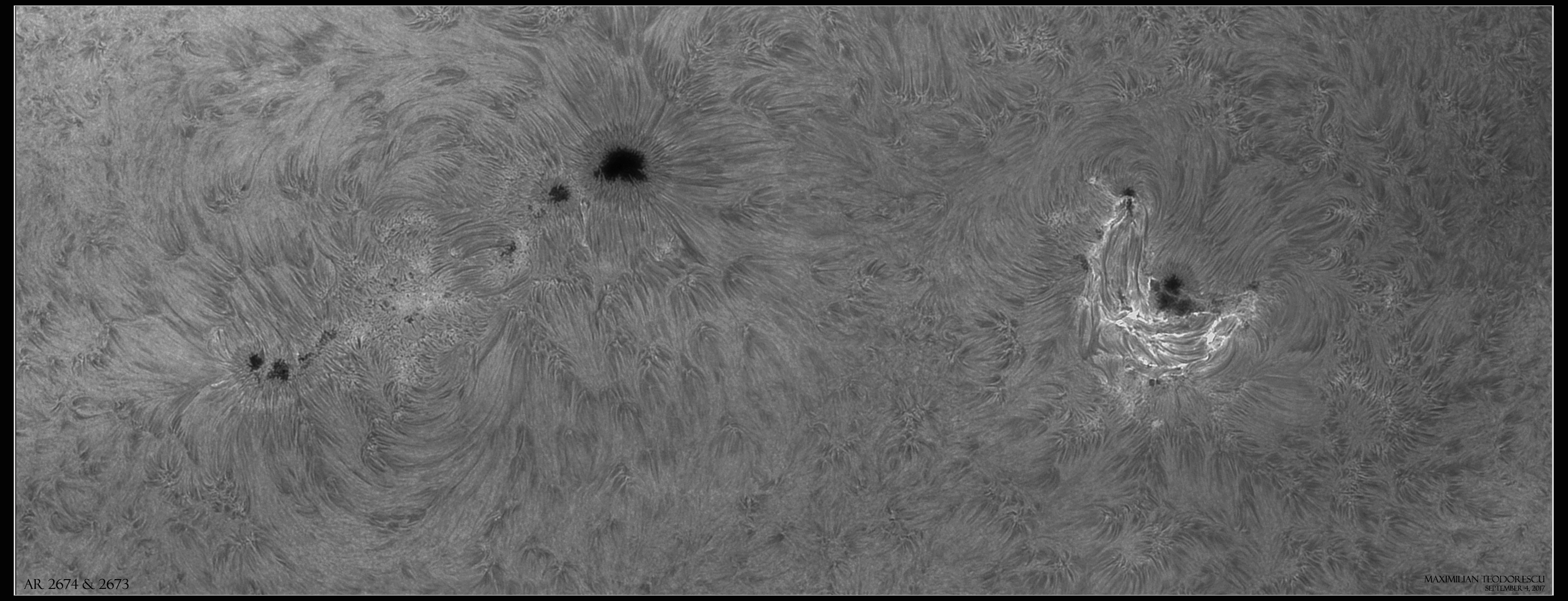 Two sunspot groups are visible these days on the Sun, one very large and one very complex. AR 2673 is a very fast evolving region.