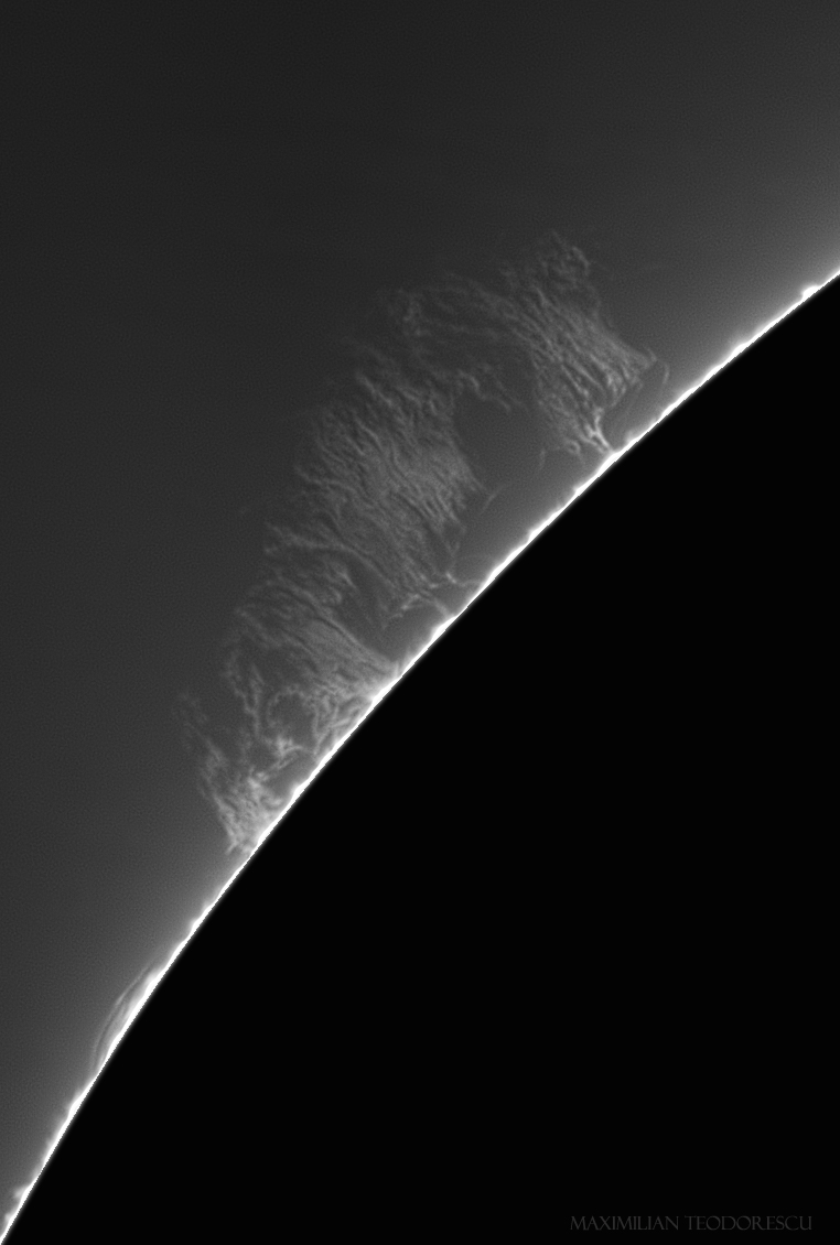 Another interesting feature, this time on the solar limb: a large and complex, but somehow faint, prominence.