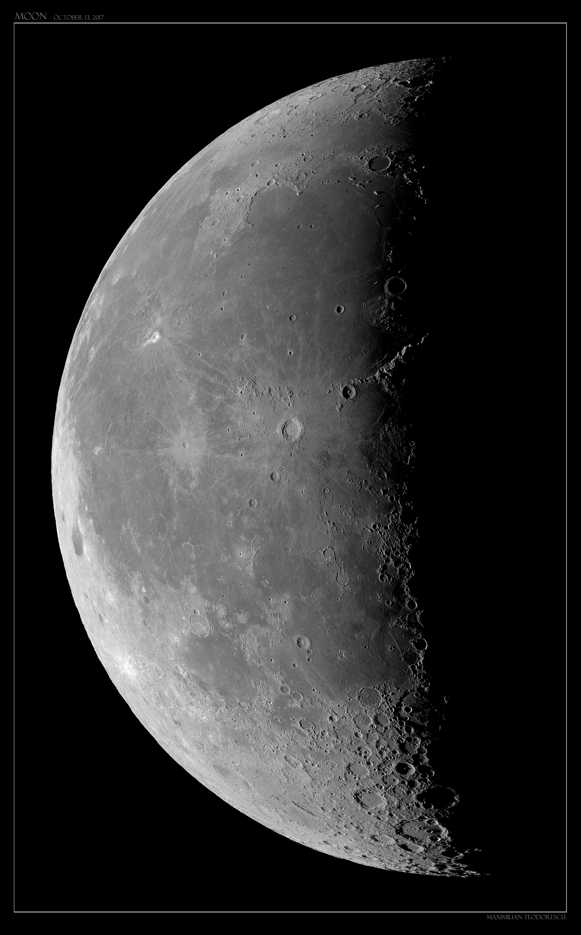 On this session, just before all of the above images were acquired, I was also trying to get a full-phase lunar mosaic. Unfortunately the seeing at that moment was rather poor, so only half of the mosaic turned out OK. Due to this, I had to resize the final image down to about 30% of the original. Many areas on the full resolution one are quite blurry so shrinking the image was the only way t go.