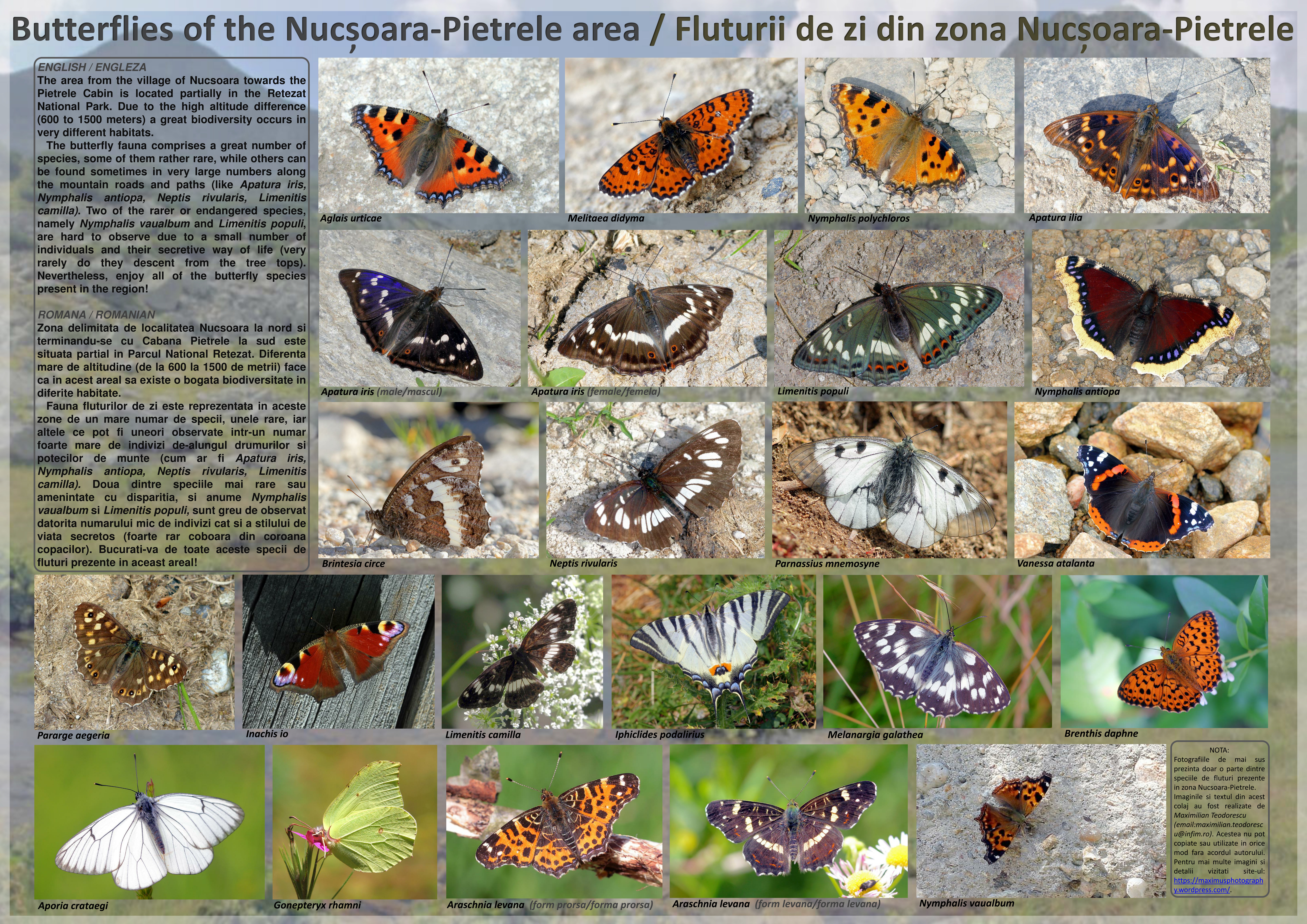 I’ve created the following poster some time ago, for one of the mountain huts in the area of Nucoasara, in order to have the tourists informed about the great diversity of these creatures in the Retezat Mountains. Some of the most threatened species are also present on this poster, as I was doing some intense insect photography in the area.