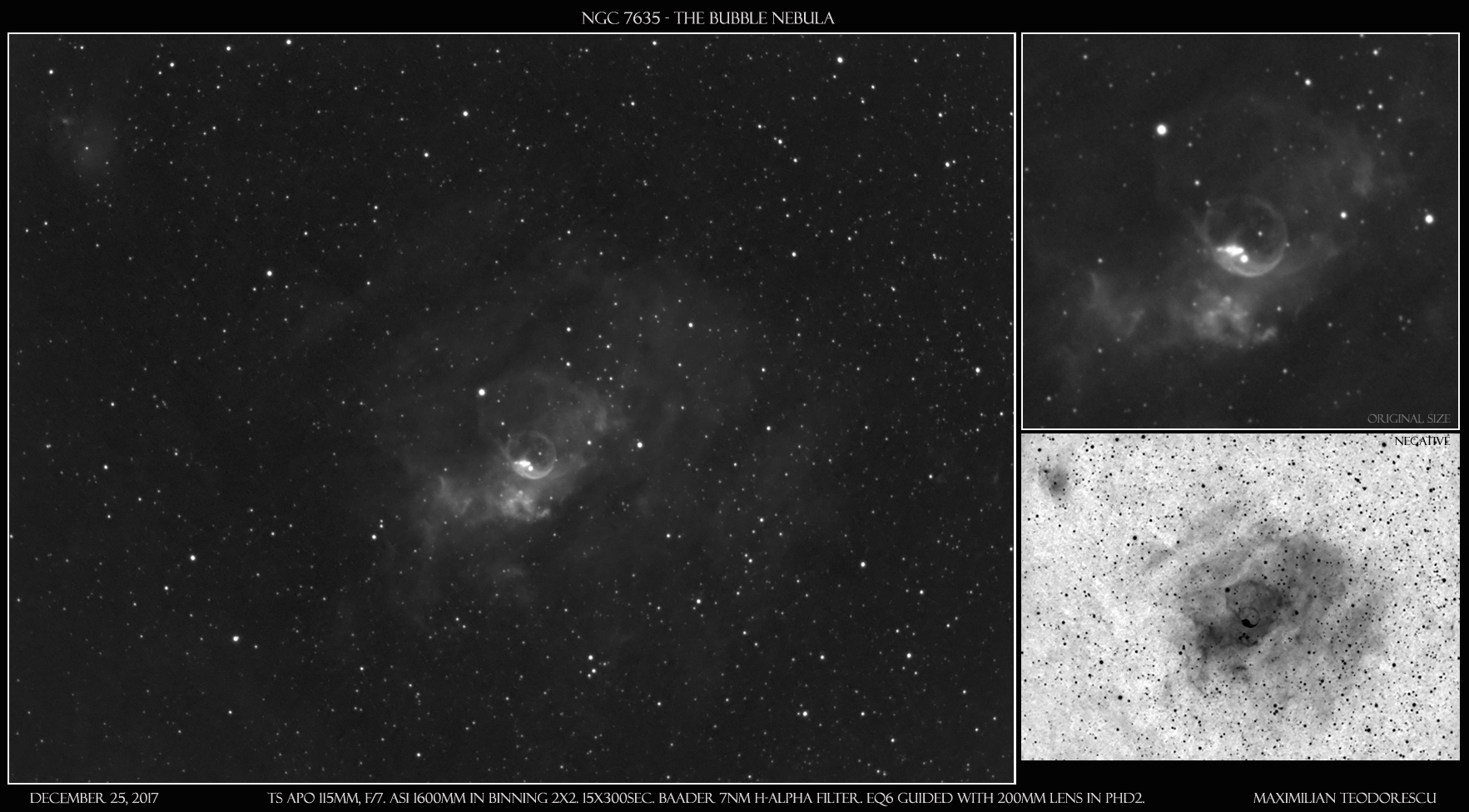 December 27, 2017Bubble Nebula – December 25, 2017 Scroll down to content And another H-alpha image, this time acquired with the 115mm APO Refractor. This object requires much deeper shots and a lot more integration time in order to reveal its true nature… Share this: Click to share on X (Opens in new window) X Click to share on Facebook (Opens in new window) Facebook Like Loading... Related Published by maxpho An amateur...photographer, astronomer, entomologist...just an amateur ;) View all posts by maxpho