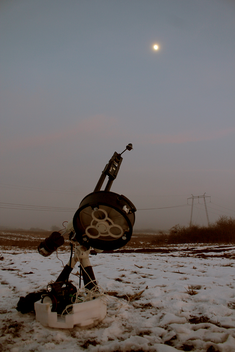 Together with a few other transit amateurs, I went not too far from home, on muddy terrain, to catch this event with the 14 inch scope. I was aiming at fine structural details on the ISS, but the local conditions (cirrus clouds and poor seeing) did not allow for good shots.