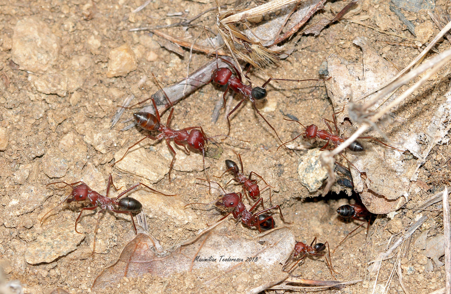 On our way back from the mountain, stopping again at around 900 meters of altitude, Leonard finds an ant colony, with some rather large individuals. Some were gathering at the entrance of the colony as soon as we were approaching it. Their bite on the camera’s lens cap was proof that these were no ordinary ants, but some rather ferocious ones (Cataglyphis nodus, ID: Leonard):