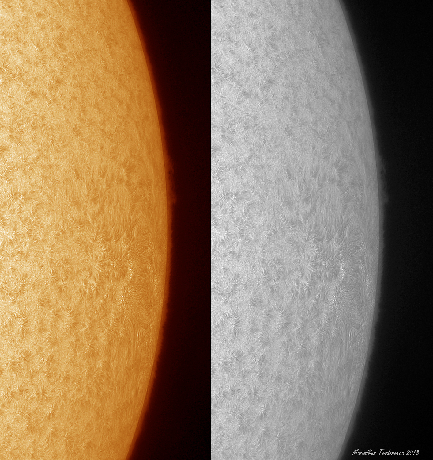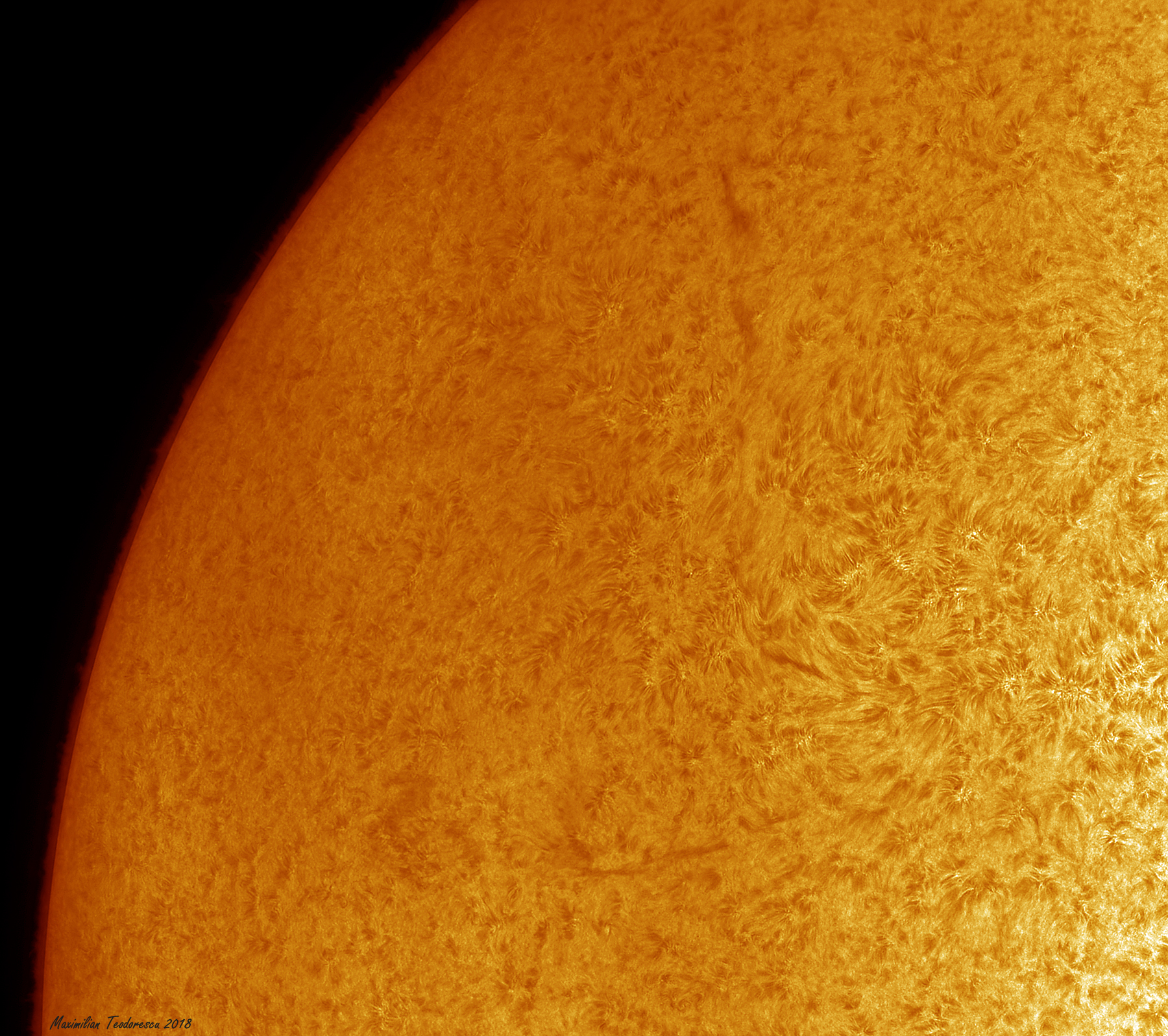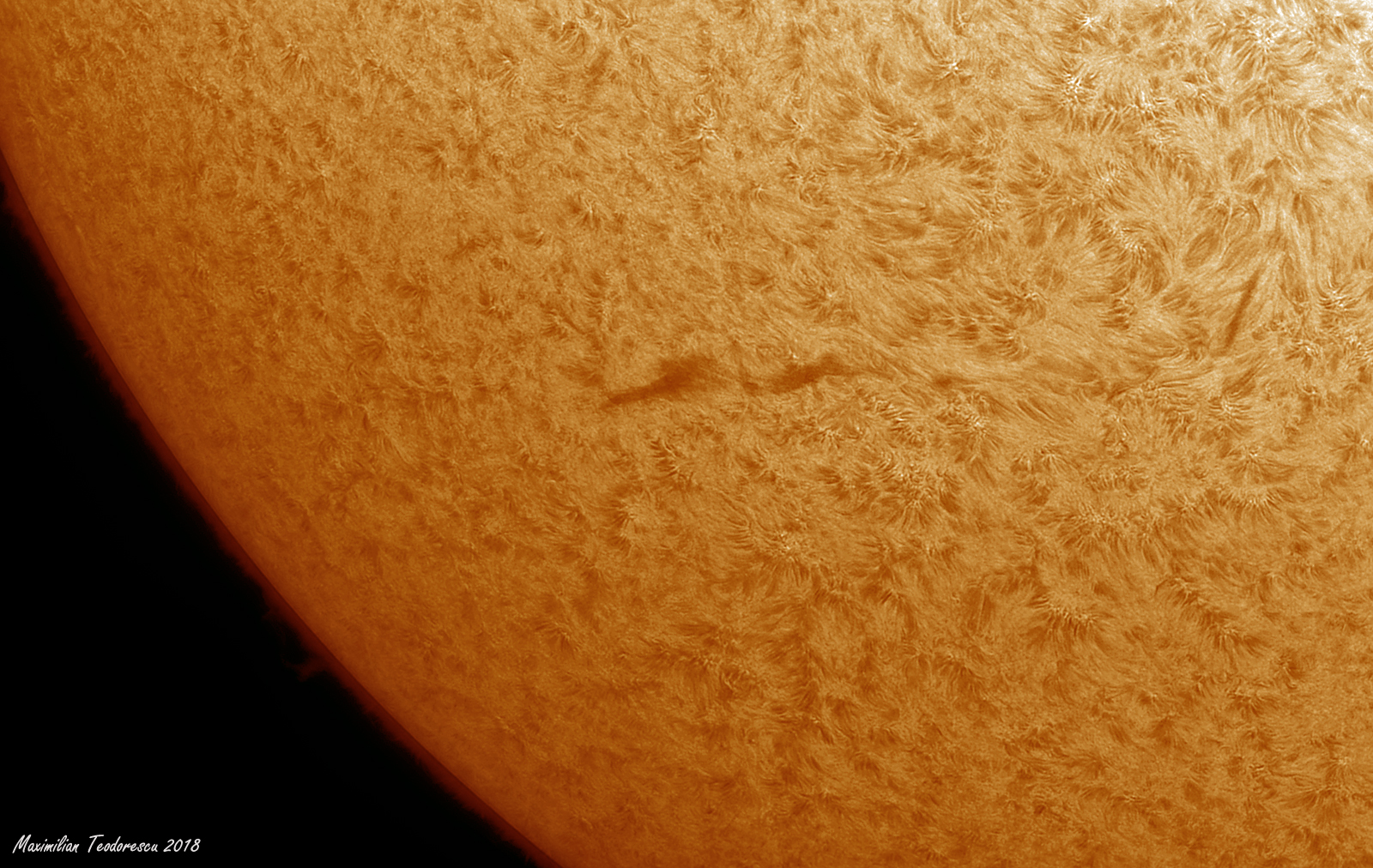 July 20, 2018July 22, 2018Sun in H-alpha – July 20, 2018 Scroll down to content After a long time since my last solar image, I’ve finally succeeded in acquiring some H-alpha images today. Setup: 150mm F/5 homemade refractor, ASI 174MM, Quark H-alpha filter. Seeing 5-6/10. Very hot. Share this: Click to share on X (Opens in new window) X Click to share on Facebook (Opens in new window) Facebook Like Loading... Related Published by maxpho An amateur...photographer, astronomer, entomologist...just an amateur ;) View all posts by maxpho