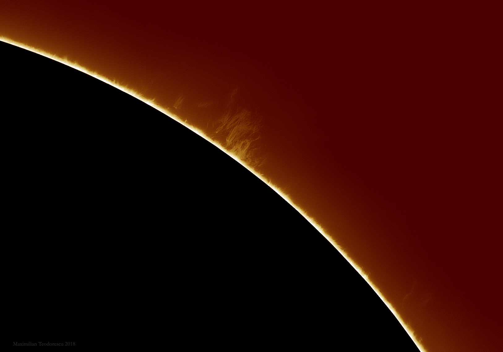September 4, 2018H-alpha Sun – September 4, 2018 Scroll down to content Some H-alpha images of the Sun from a short imaging session. Some nice prominences are observed, but nothing out of the ordinary. We are at the Solar minimum. 150mm F/5 refractor, Quark chromosphere, ASI 174MM. Seeing 6/10. Share this: Click to share on X (Opens in new window) X Click to share on Facebook (Opens in new window) Facebook Like Loading... Related Published by maxpho An amateur...photographer, astronomer, entomologist...just an amateur ;) View all posts by maxpho