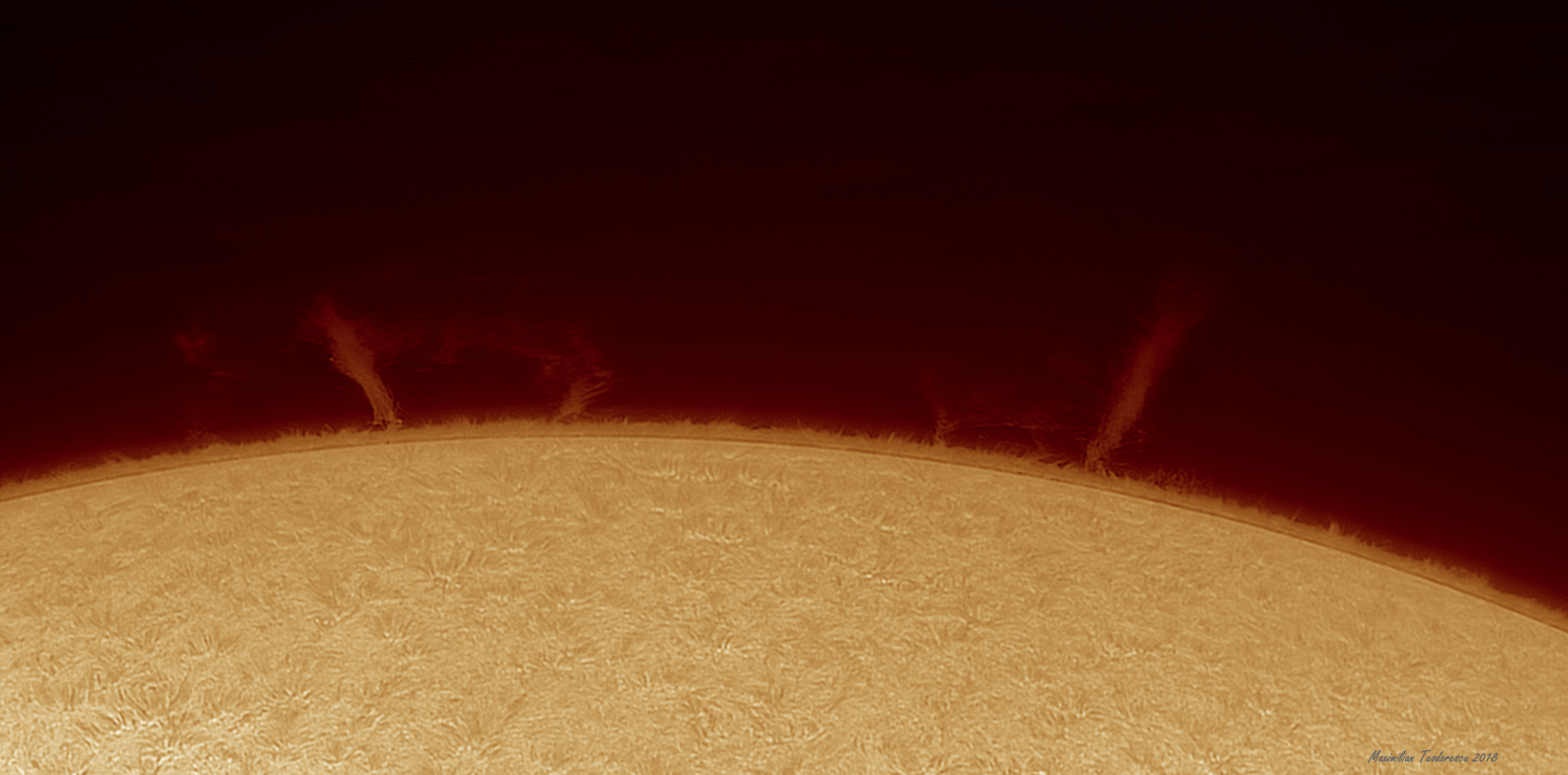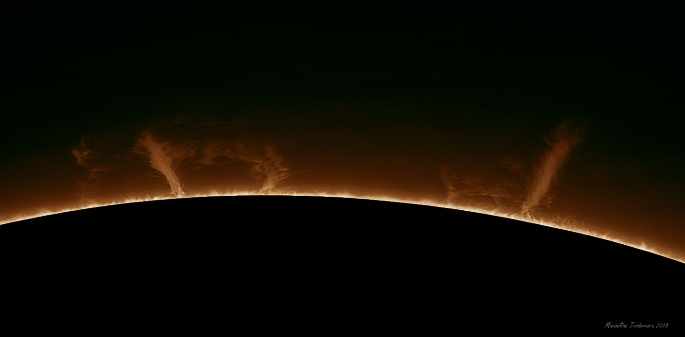 September 9, 2018H-alpha Sun – September 9, 2018 Scroll down to content Some lovely proms today on the Sun’s limb. It seems that the next few days there will be some activity in H-alpha light. 150mm F/5 refractor, Quark chromospehre, ASI 174MM. Seeing 5/10. Share this: Share on X (Opens in new window) X Share on Facebook (Opens in new window) Facebook Like Loading... Related Published by maxpho An amateur...photographer, astronomer, entomologist...just an amateur ;) View all posts by maxpho