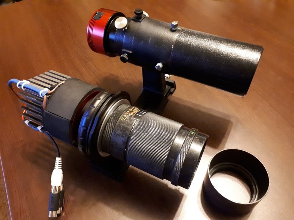 And a shot of the setup: the Jupiter 37A and ASI1600MM (in the foreground), and the guiding scope (a 50mm finder with ASI 174MM camera):