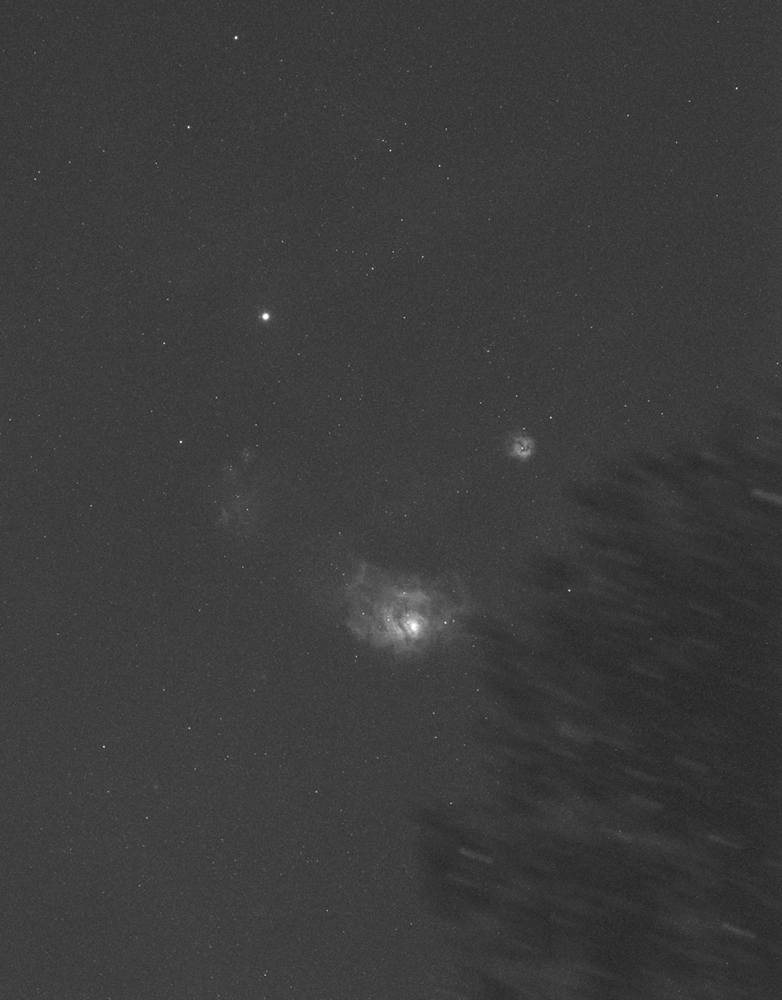 And the last shot, Saturn next to the Lagoon and Trifid nebulae, setting behind a tree. Only one shot of just 60 seconds. This gathering is my prime target for the next session…