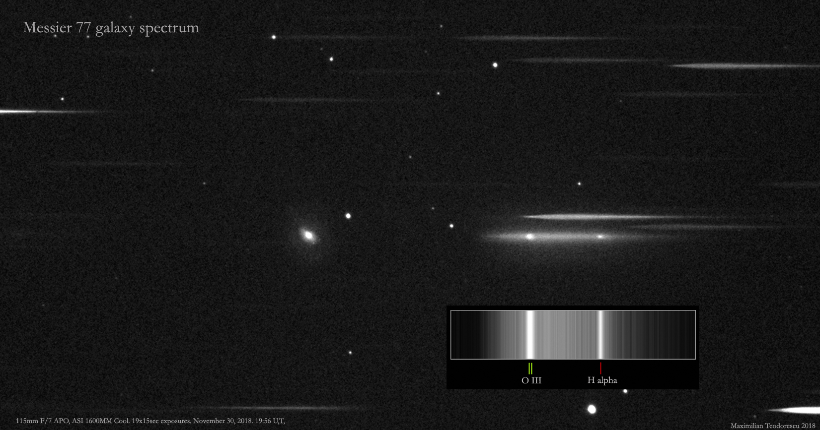 A spectrum of galaxy M 77, a Seyfert type galaxy, with an active nuclei.