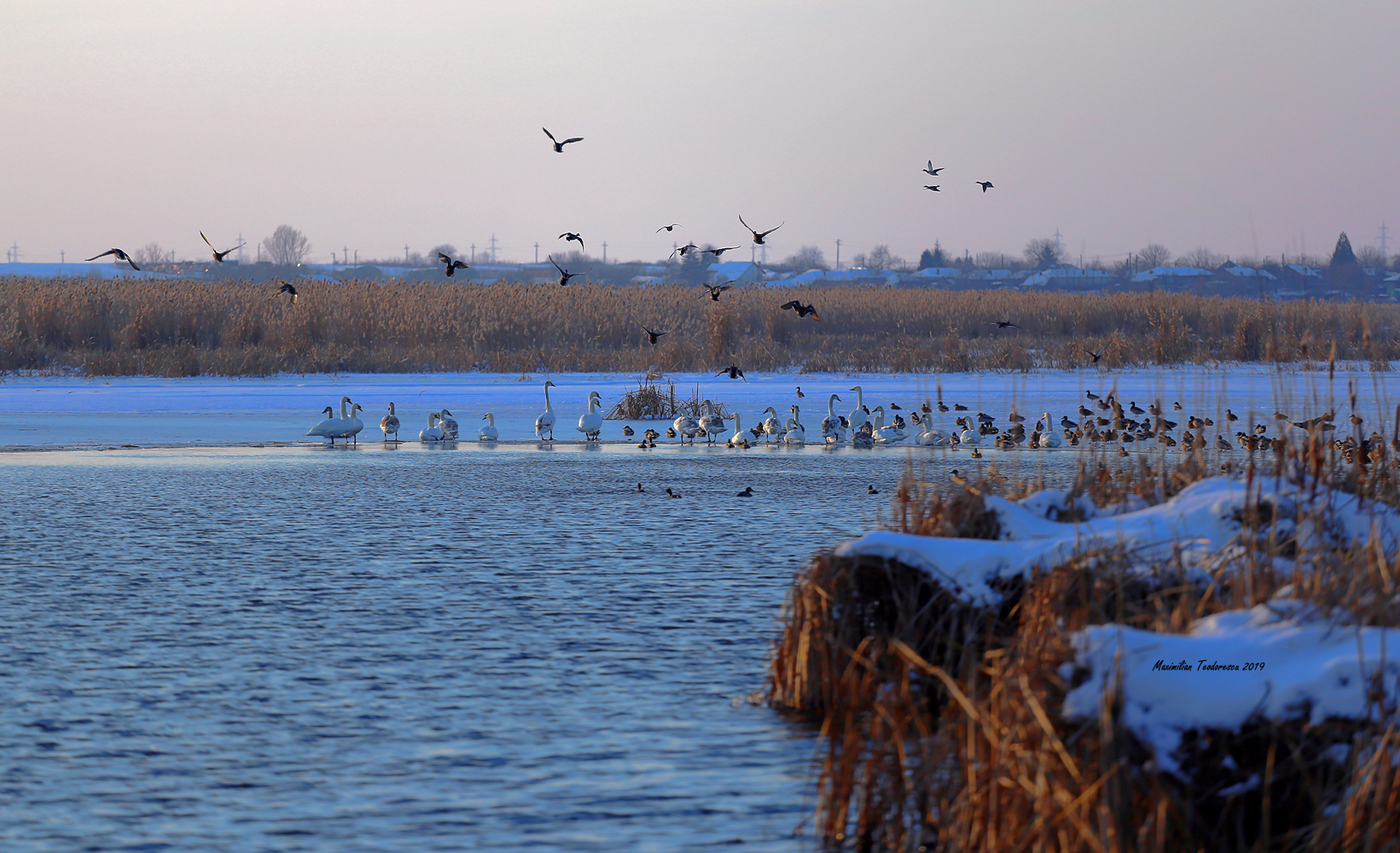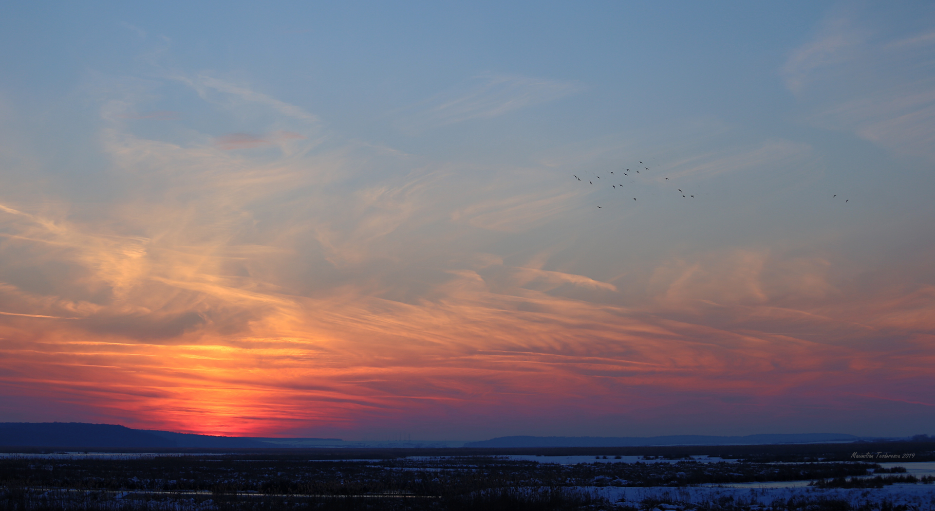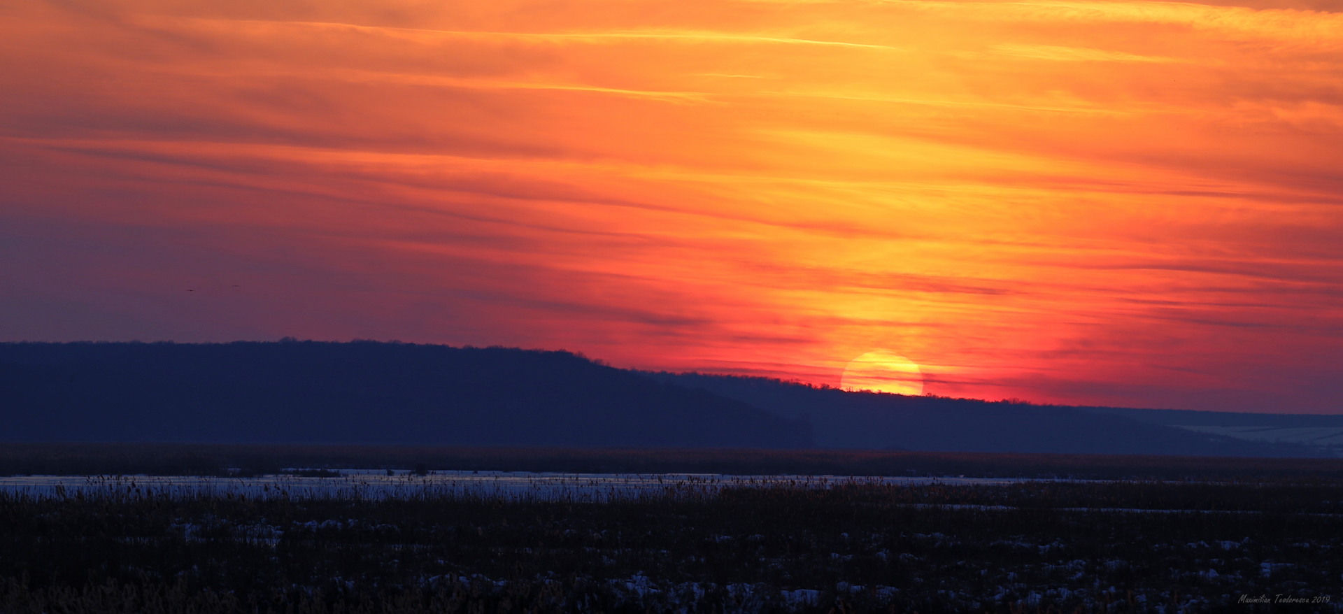 Not many subjects to test the equipment, but some spectacular light and colors: the blue of the sky reflected by the snow, and the reddish cirrus clouds and tall grasses.