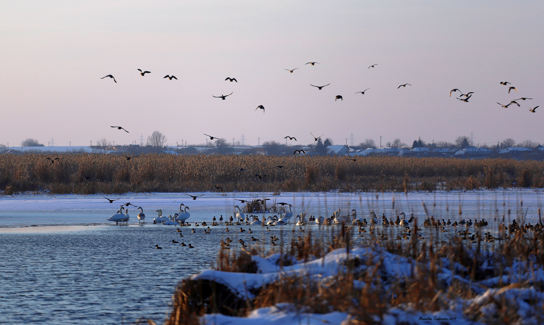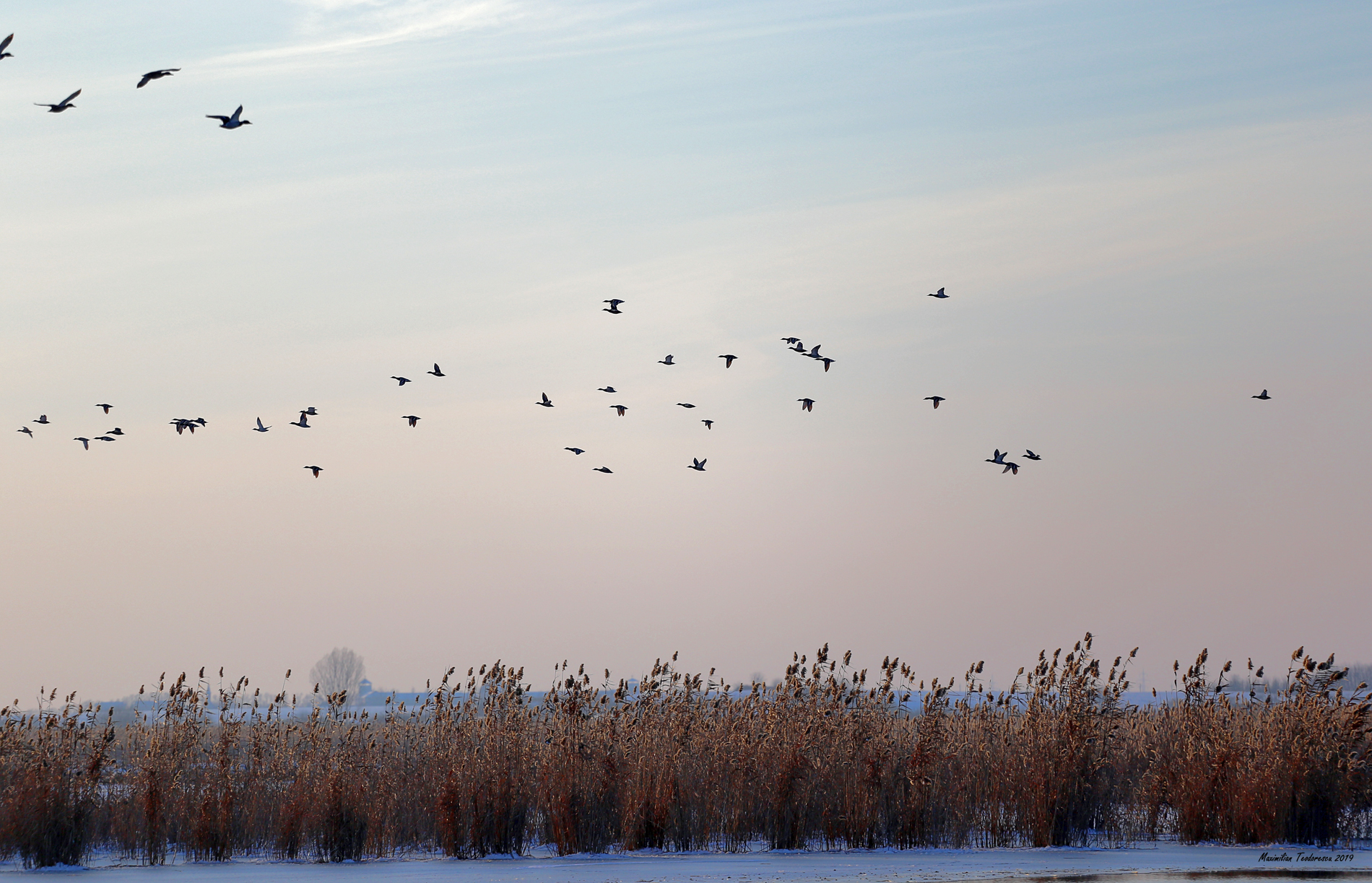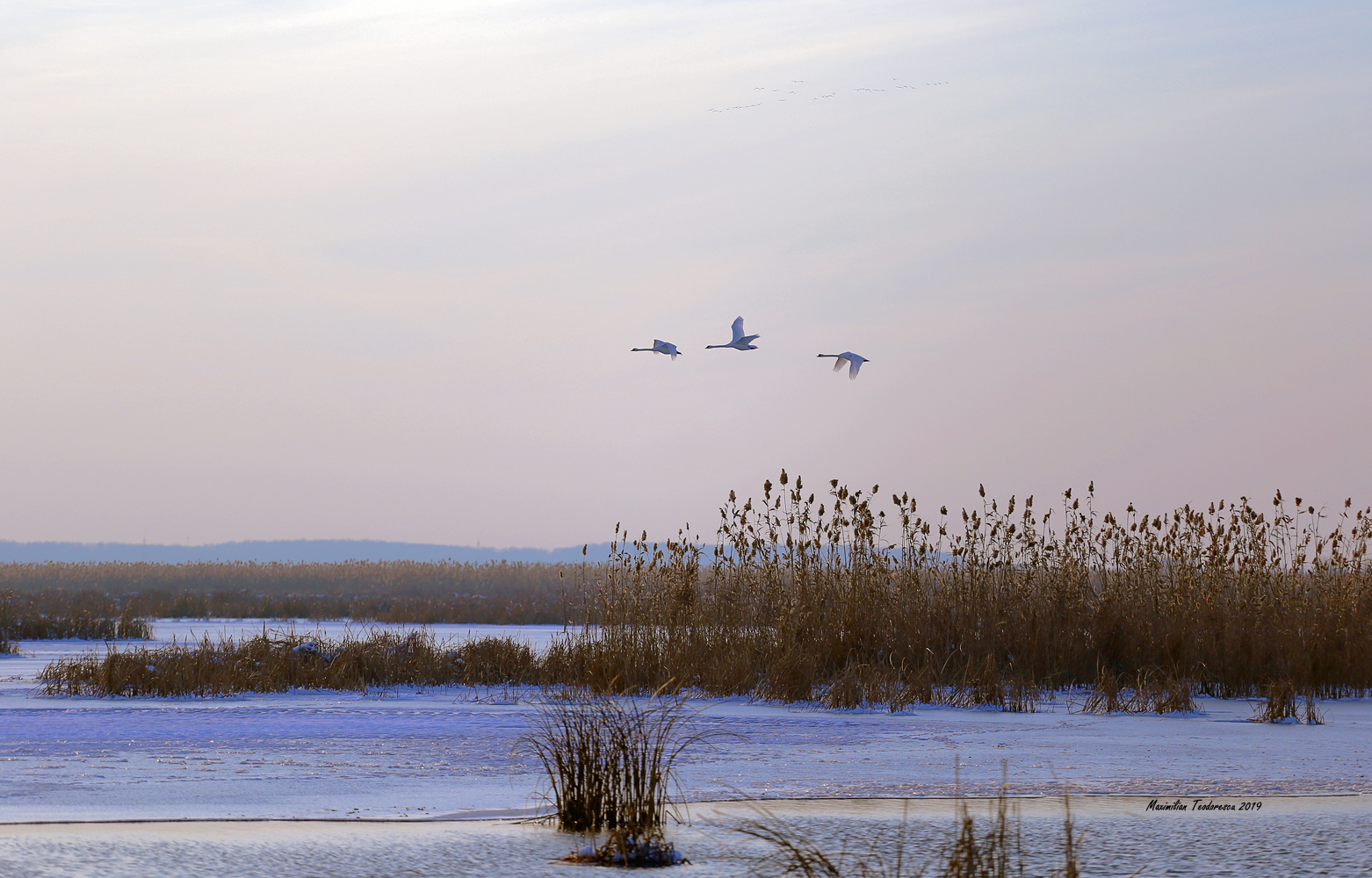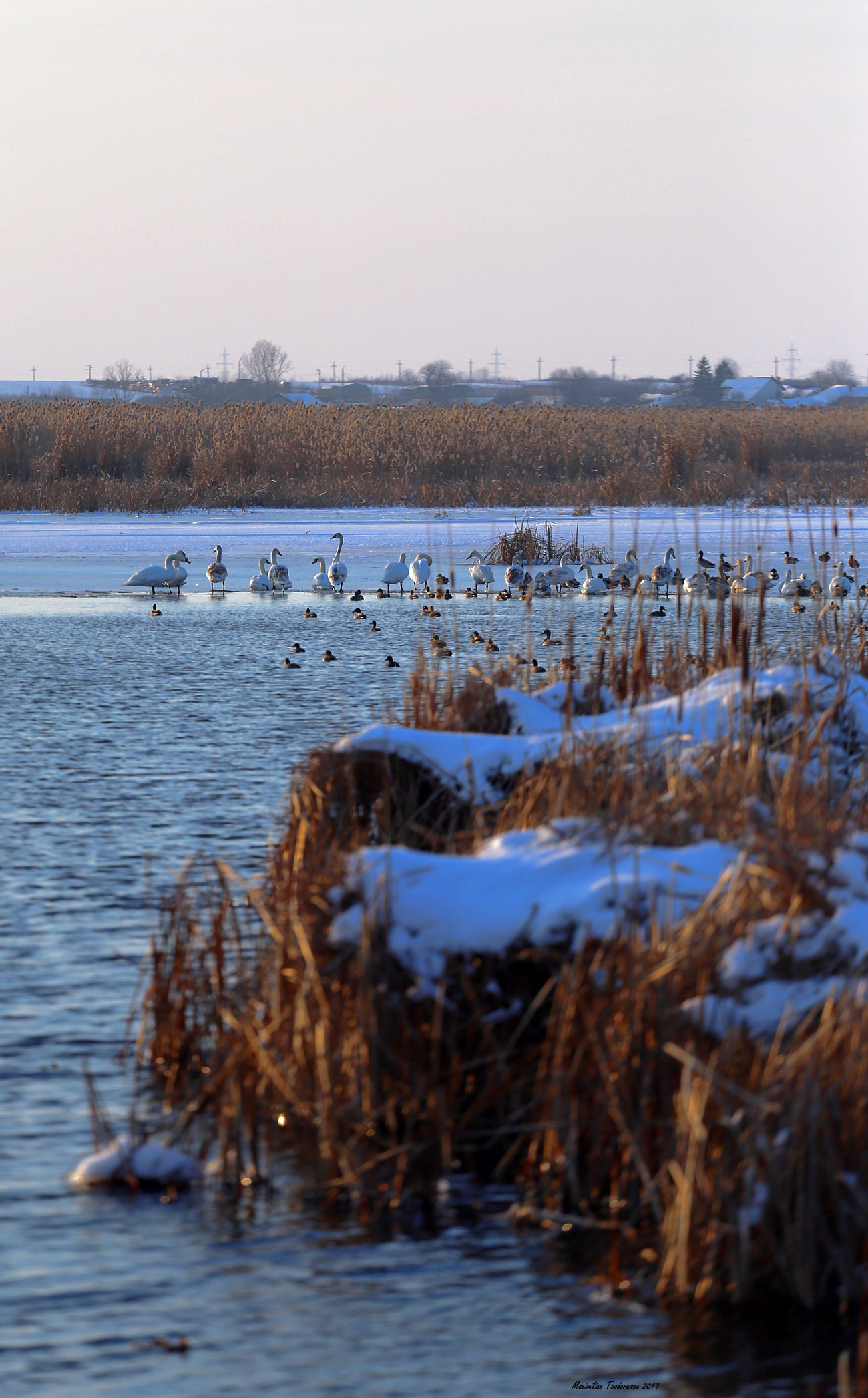 Not many subjects to test the equipment, but some spectacular light and colors: the blue of the sky reflected by the snow, and the reddish cirrus clouds and tall grasses.