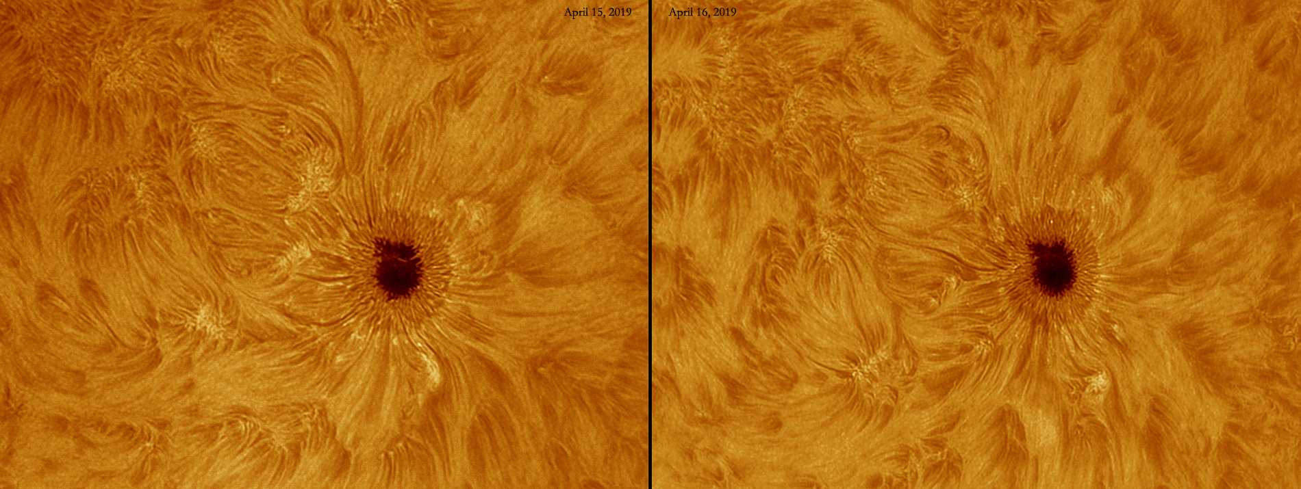 Comparison of April 15 and 16 H-alpha views: