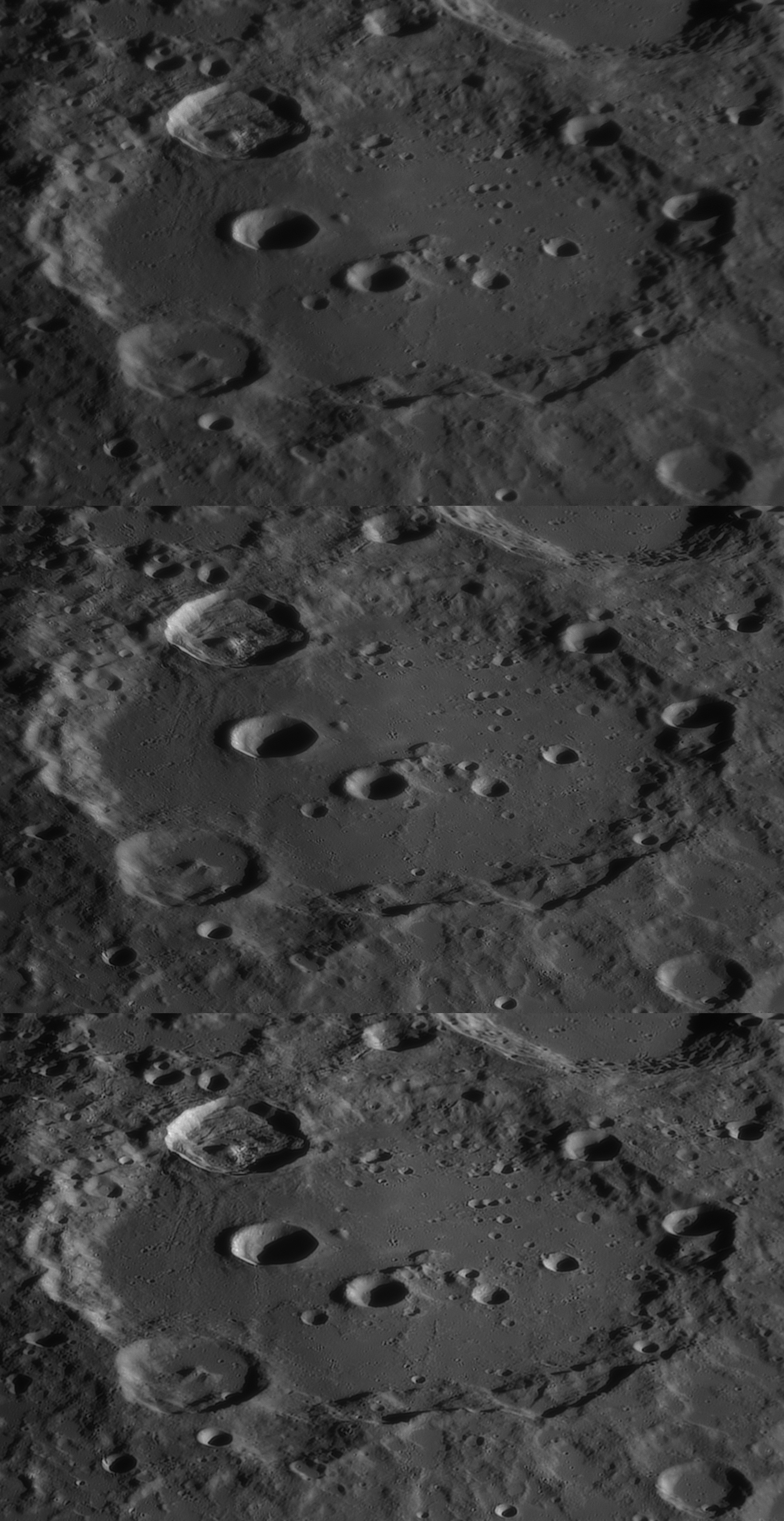 And a comparison between different wavelengths on Clavius. Processing was similar, as was the seeing (estimated at 8/10). Filters used: RGB CCD from Baader.