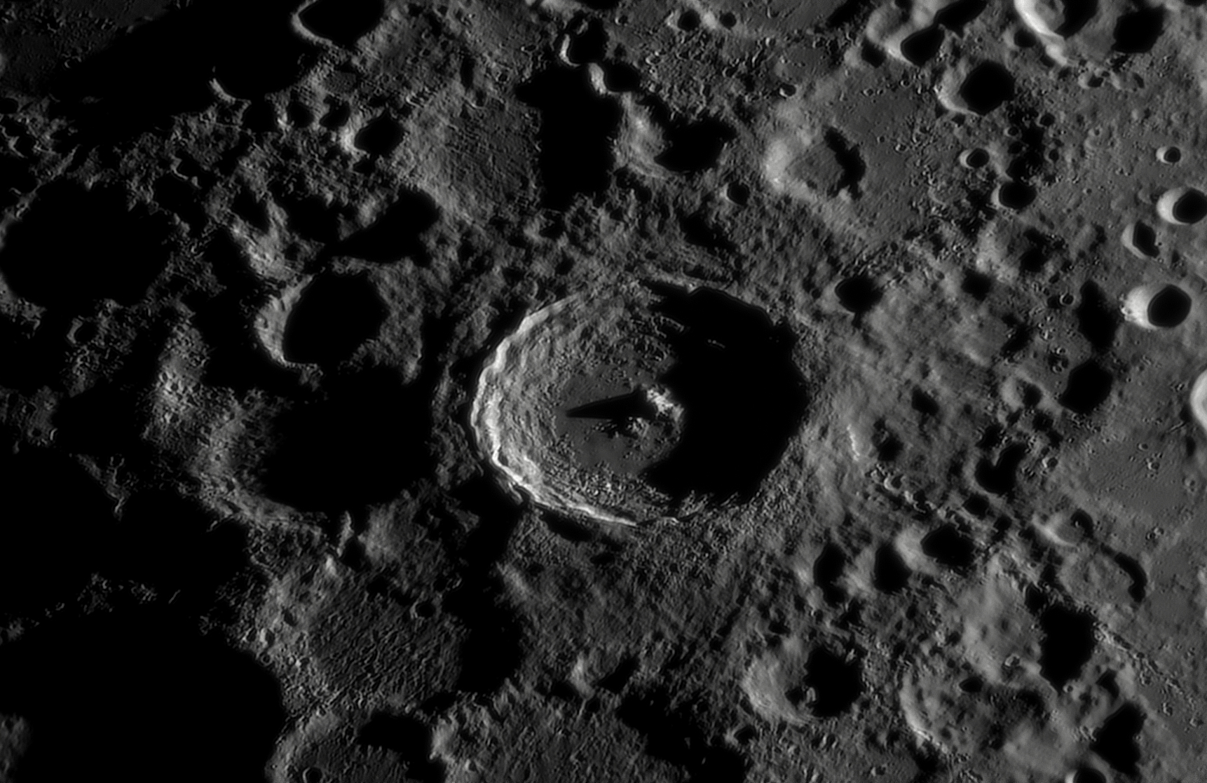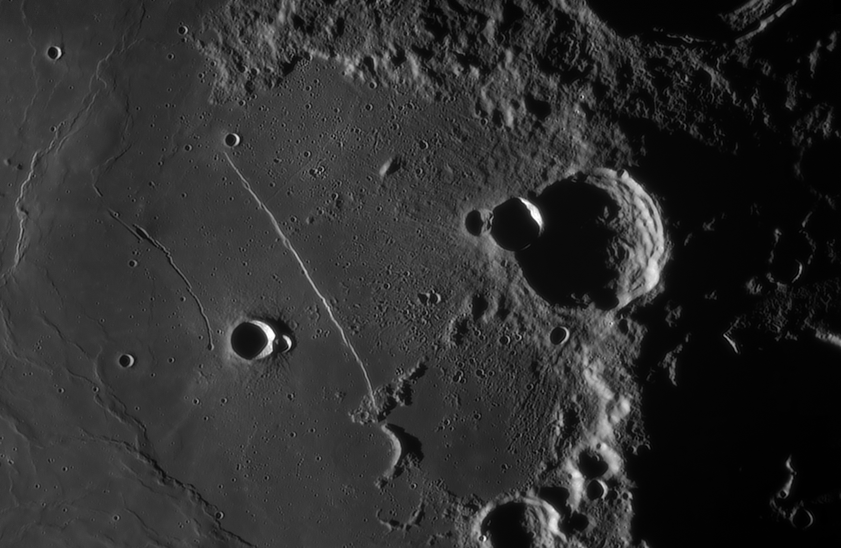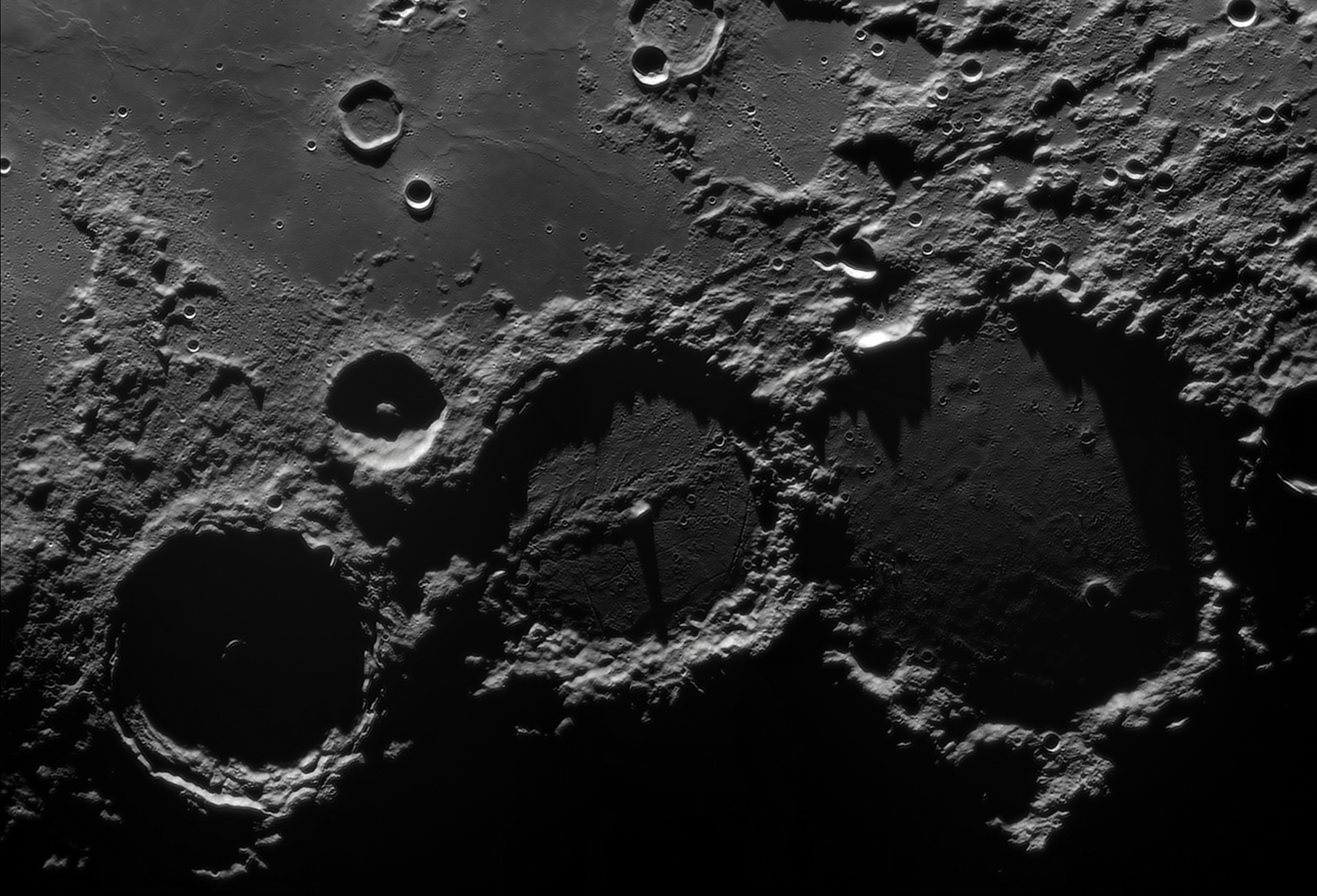 The Arzachel, Alphonsus and Ptolemaeus craters, in red and through dew on the secondary mirror: