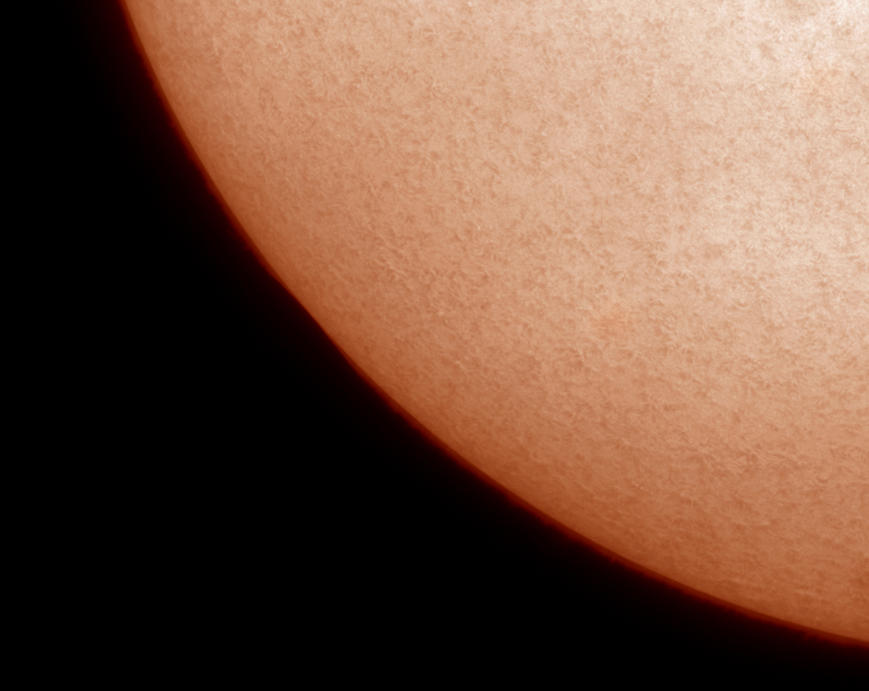 And the fourth contact, with the lunar limb just touching the solar one; only the chromosphere gives away the presence of the Moon: