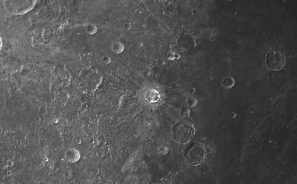 Crater Pythagoras under very high Sun on October 3, 2020. Poor seeing for this shot but a nice view of the area.