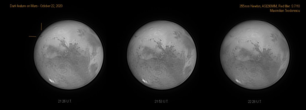 Mars on October 22, 2020 with a new dark feature, yet to be understood: