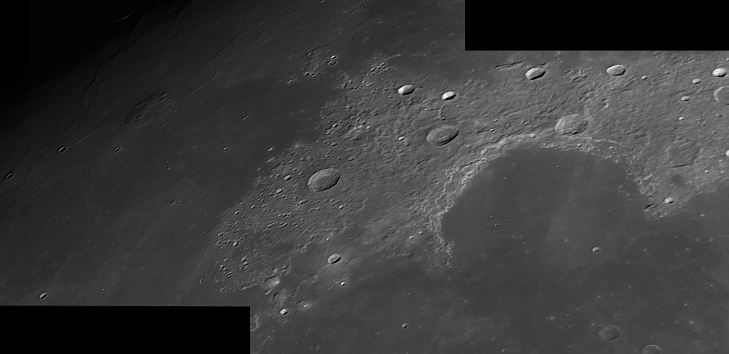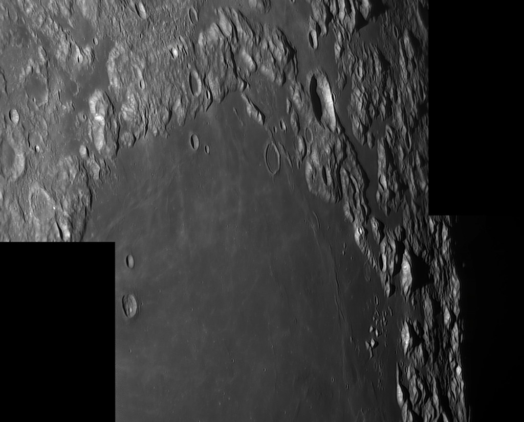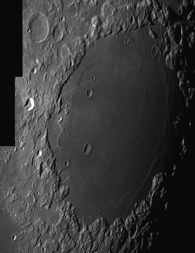 Mare Crisium on October 3, 2020. Fair seeing only, but some fine details can be seen. 355mm Newtonian, ASI174MM. Red filter.