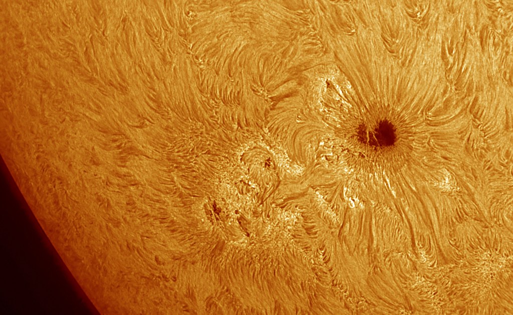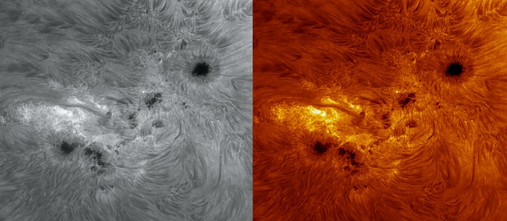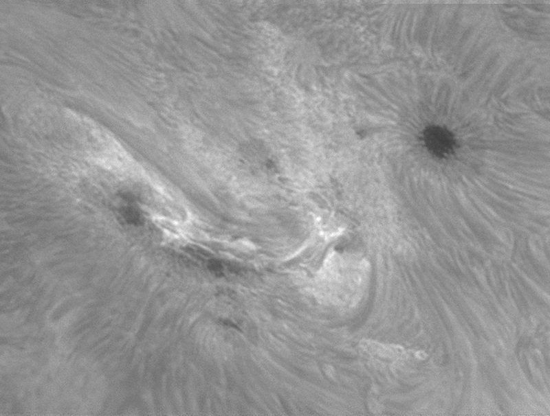 A brief spell of clear skies and fair seeing allowed for a quick shot of this new active sunspot group. It belongs to the new Solar Cycle 25, and shows some nice activity in H alpha. The animation shows a transition from Photosphere to Chromosphere and back.