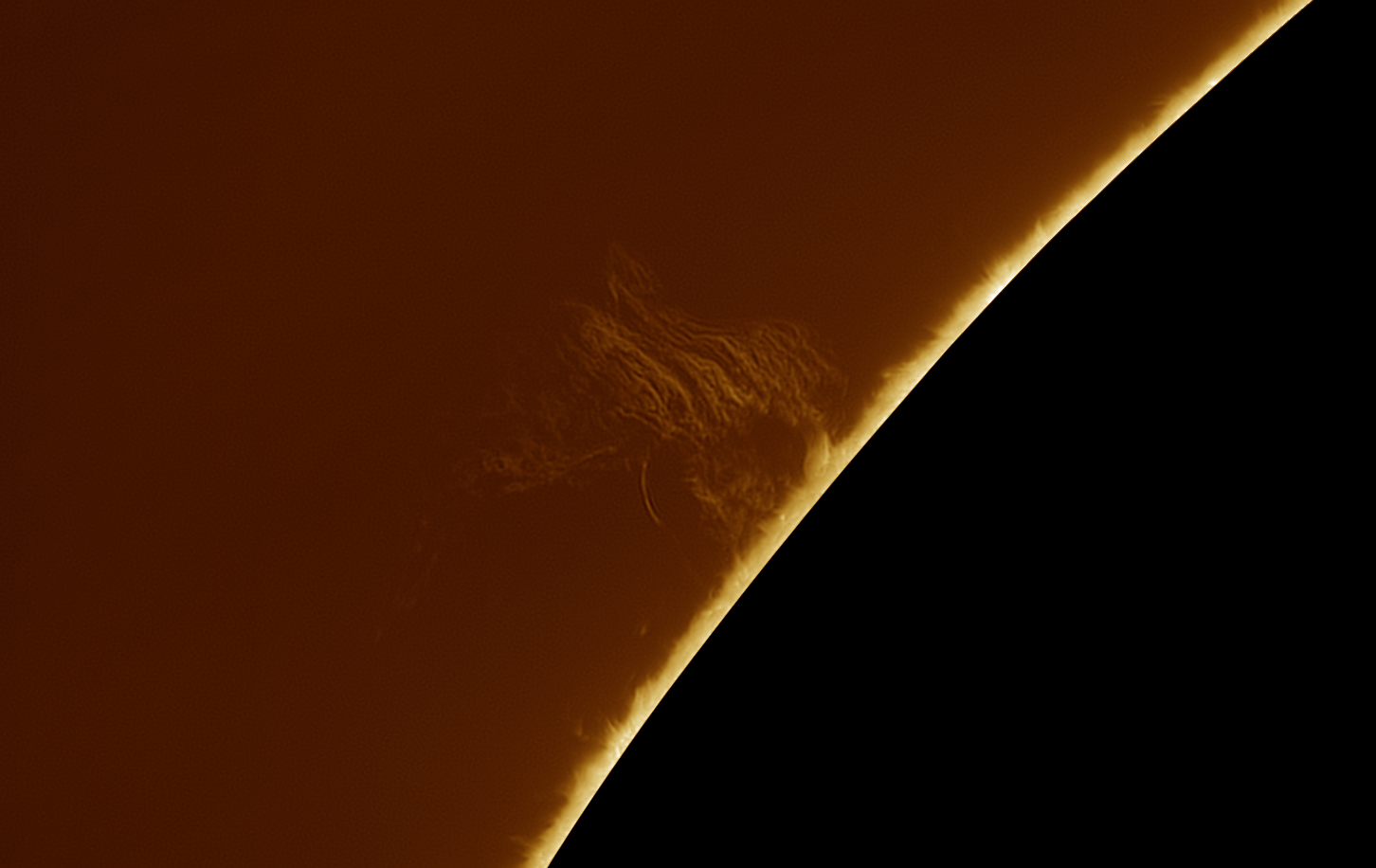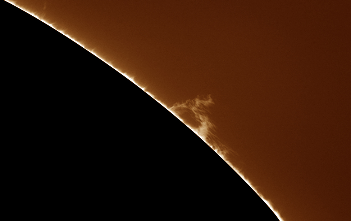 A gigantic prom on October 19, 2020. It looks like the Sun offers some very nice views in H alpha these days. 150mm refractor, Quark H alpha filter. ASI174MM. Seeing 5/10.