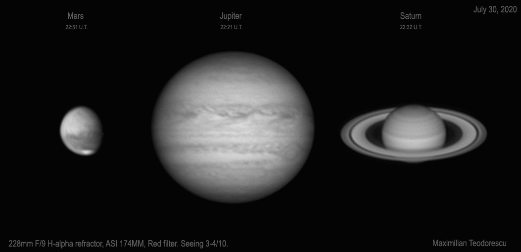 3. The planets with the 355mm Newtonian on August 3, 2020. Under moderate to good seeing. Mars is getting bigger π