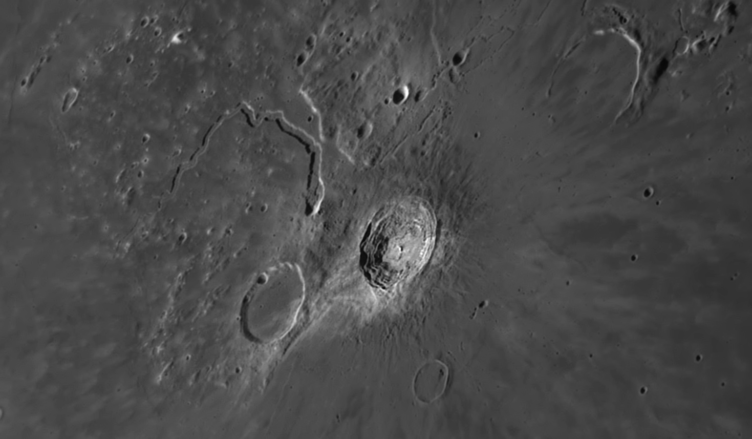 Lunar crater Aristarchus and Vallis Schroteri on October 11, 2020. Good seeing but a lot of dew on the mirrors. 355mm Newton, ASI290MM, Red filter.