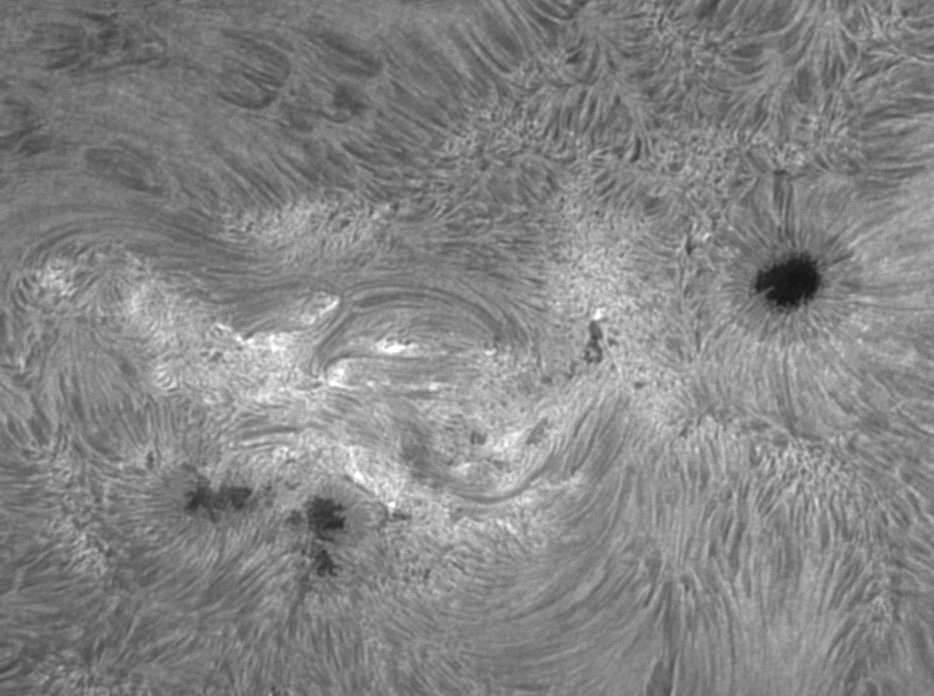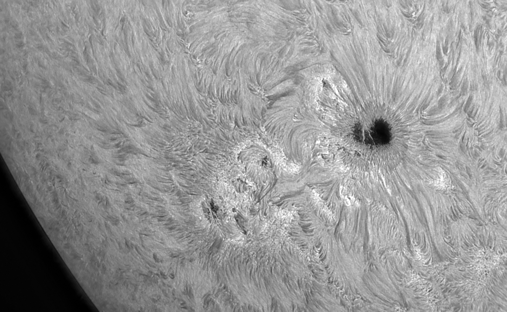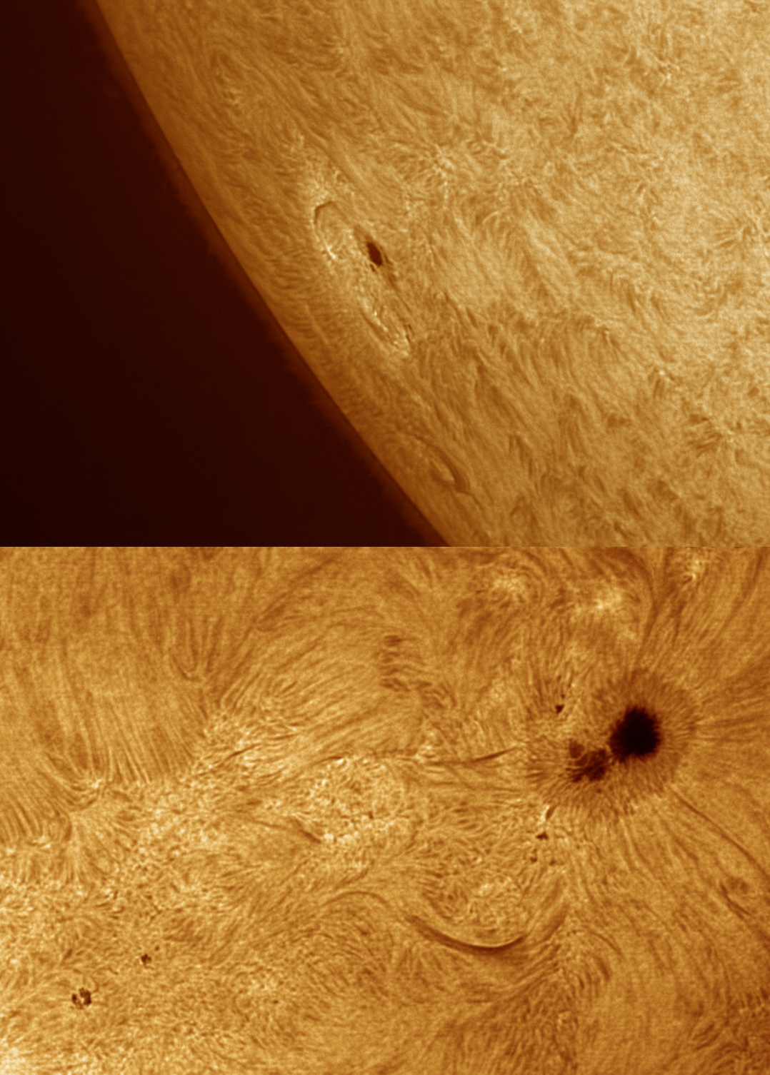 A brief spell of clear skies and fair seeing allowed for a quick shot of this new active sunspot group. It belongs to the new Solar Cycle 25, and shows some nice activity in H alpha. The animation shows a transition from Photosphere to Chromosphere and back.