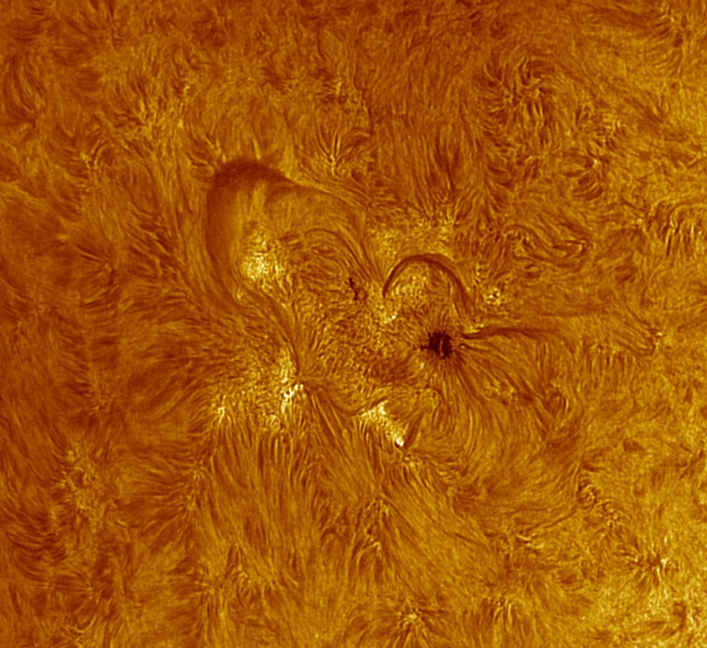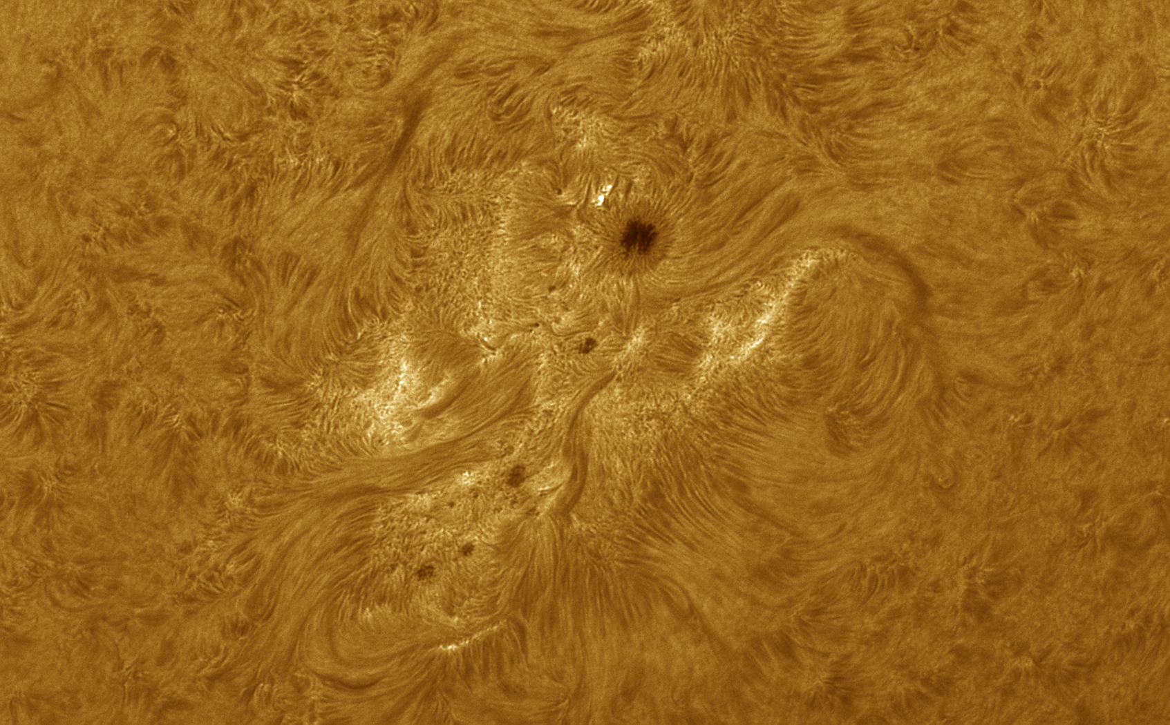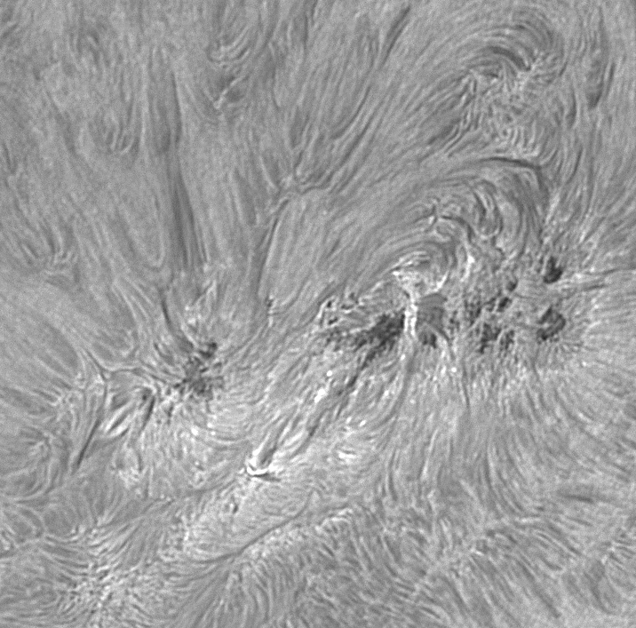 Sunspot AR2860 on August 31, in poor seeing, lots of wind, and two refractors: 228mm and 150mm. Both with Herschel wedge, H-alpha 35nm filter, Powermate 2.5x and ASI174MM.