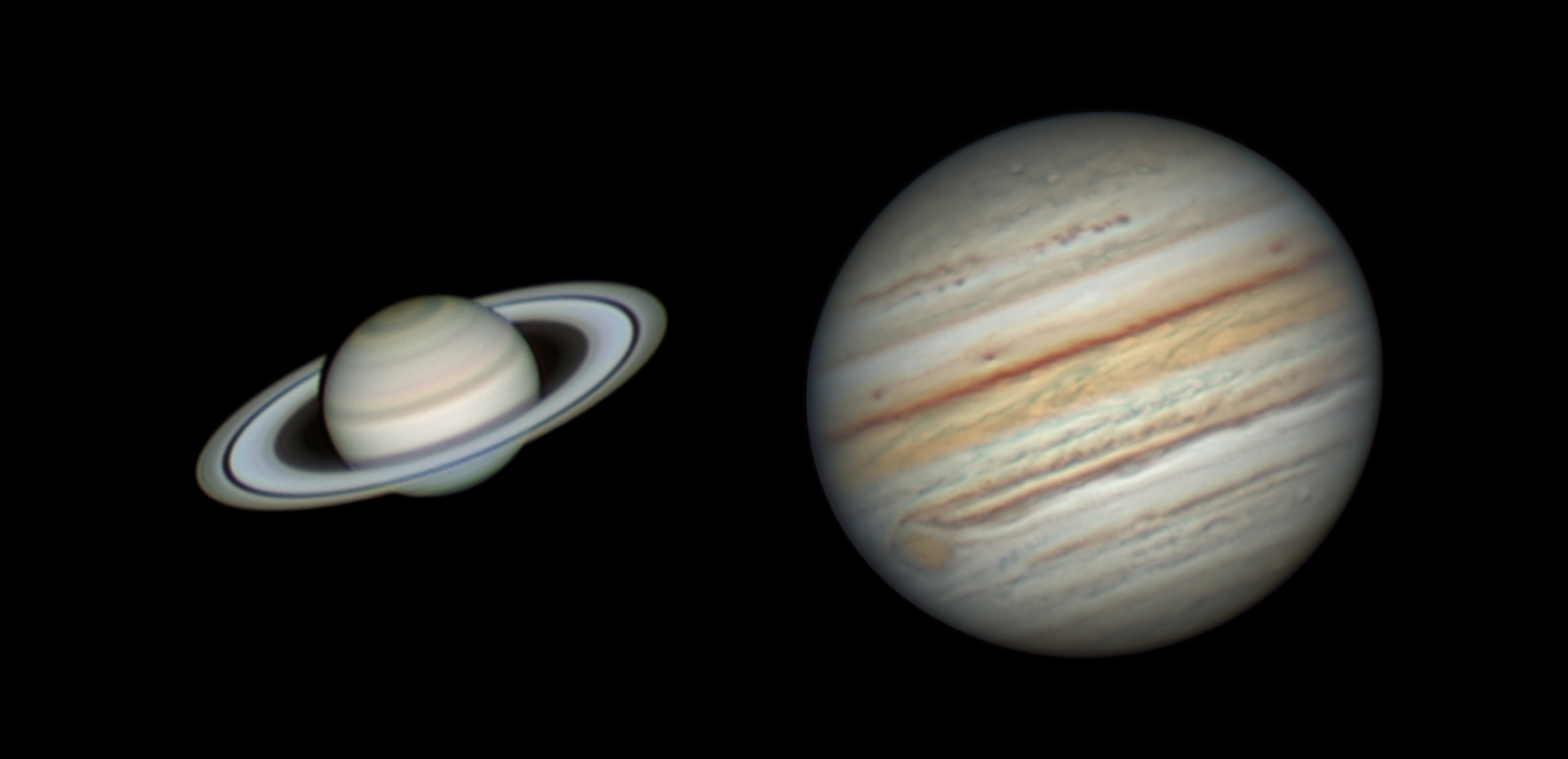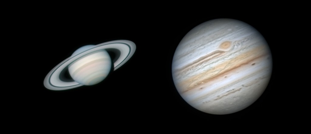 Saturn and Jupiter on September 25 in fair to good seeing: