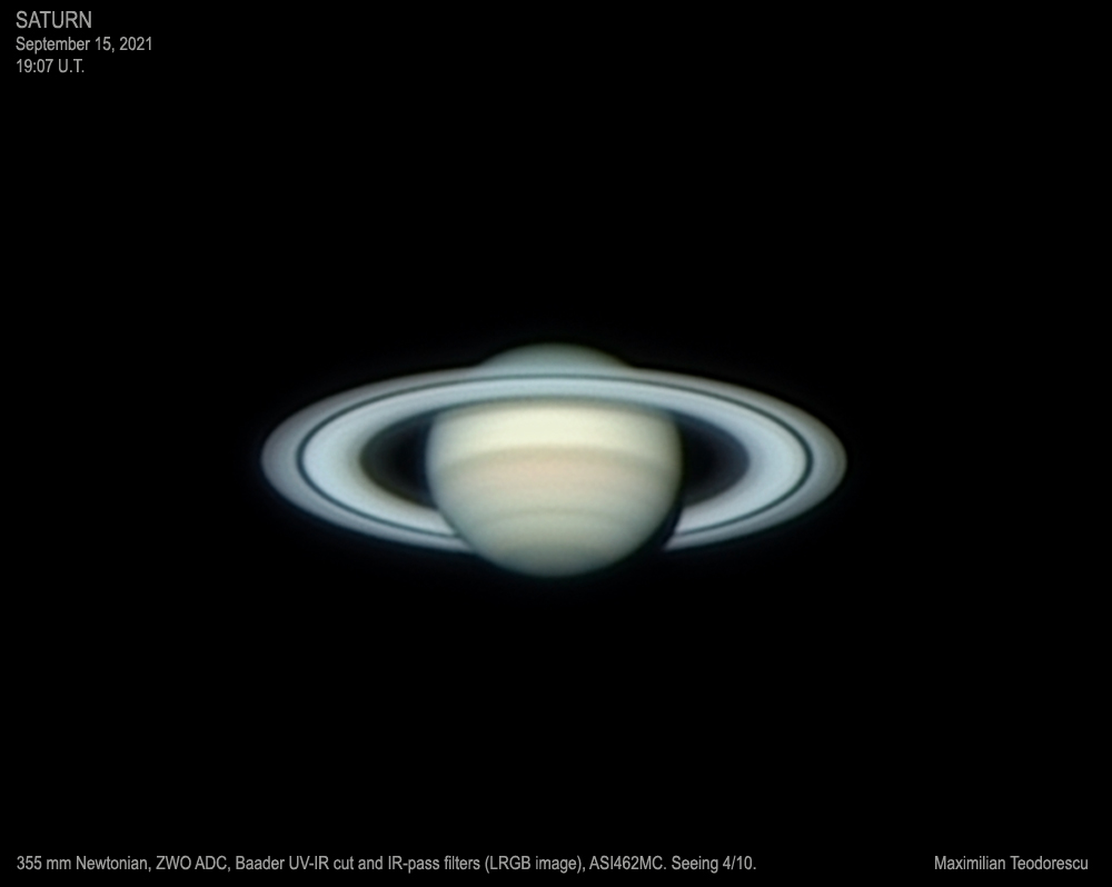 Saturn on September 25 under a few moments of very good seeing for the altitude.