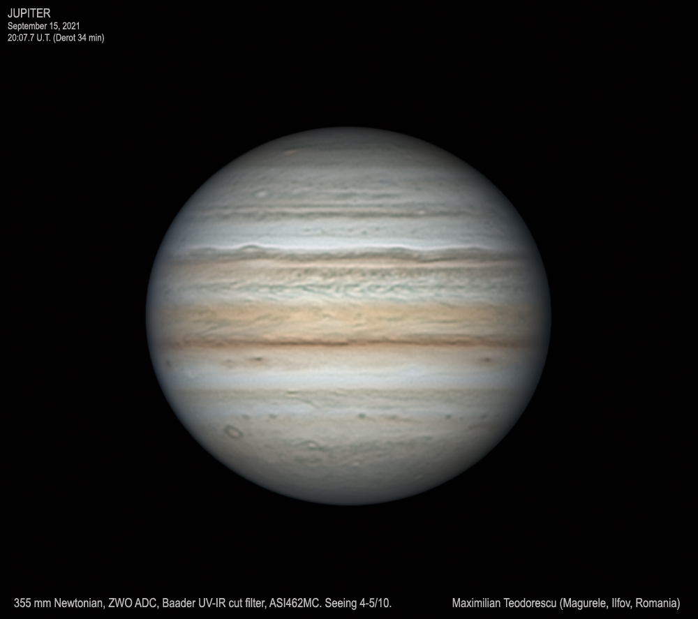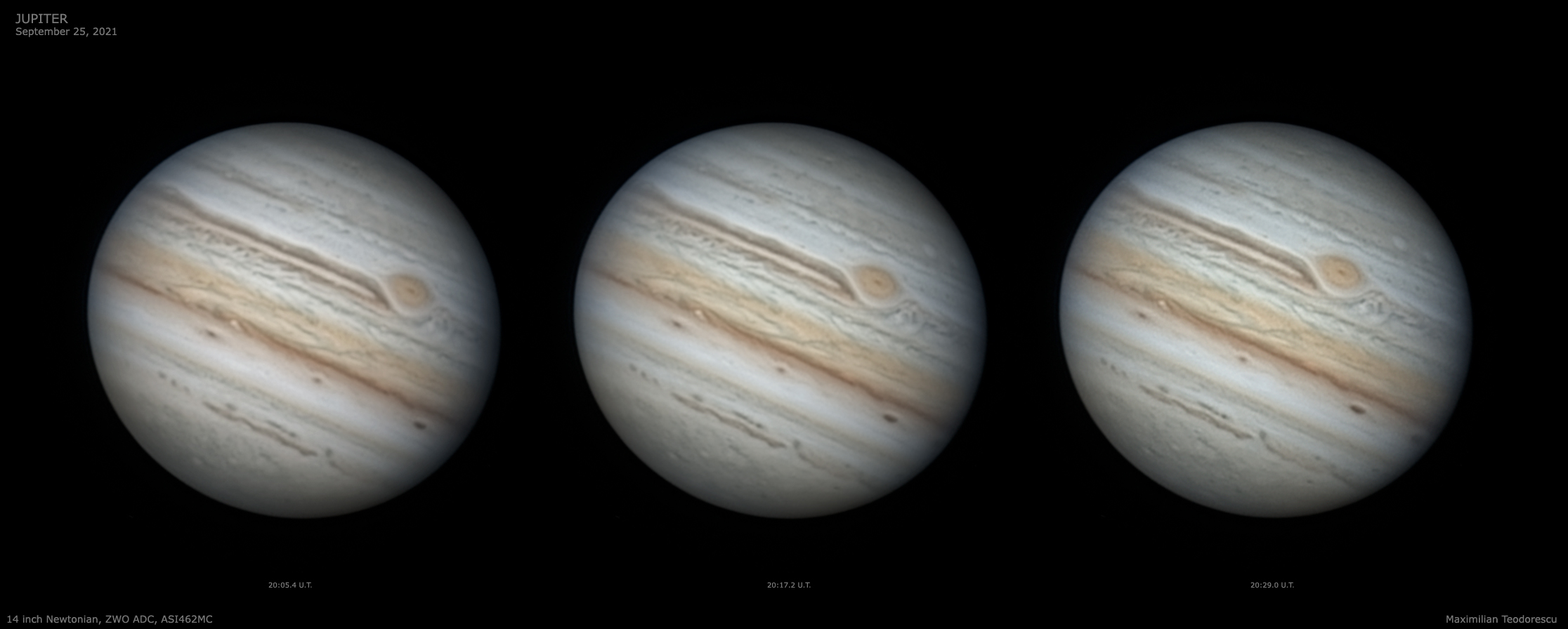 Planet Jupiter on September 15. First result using the ADC (Atmospheric Dispersion Corrector). Poor to fair seeing mostly.