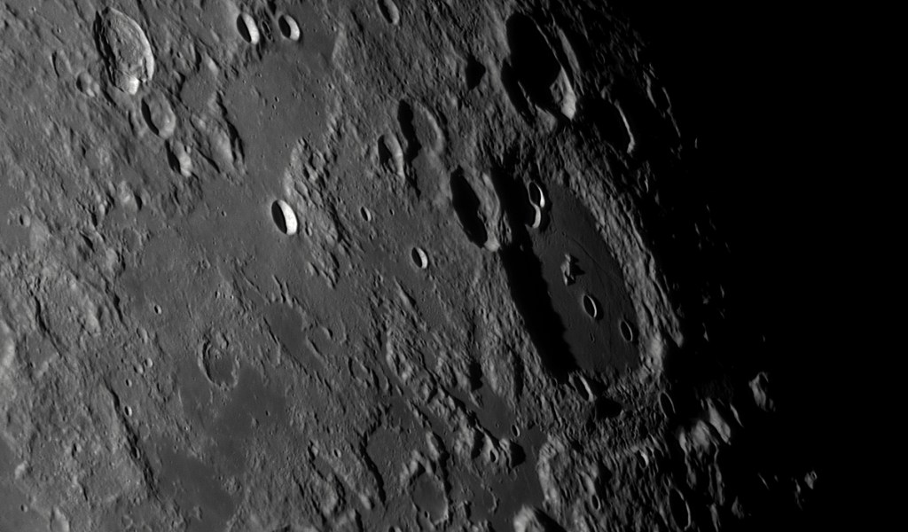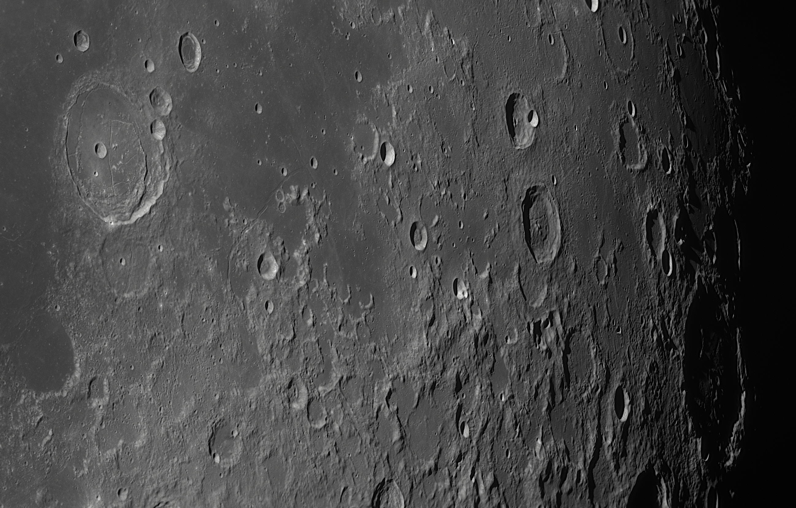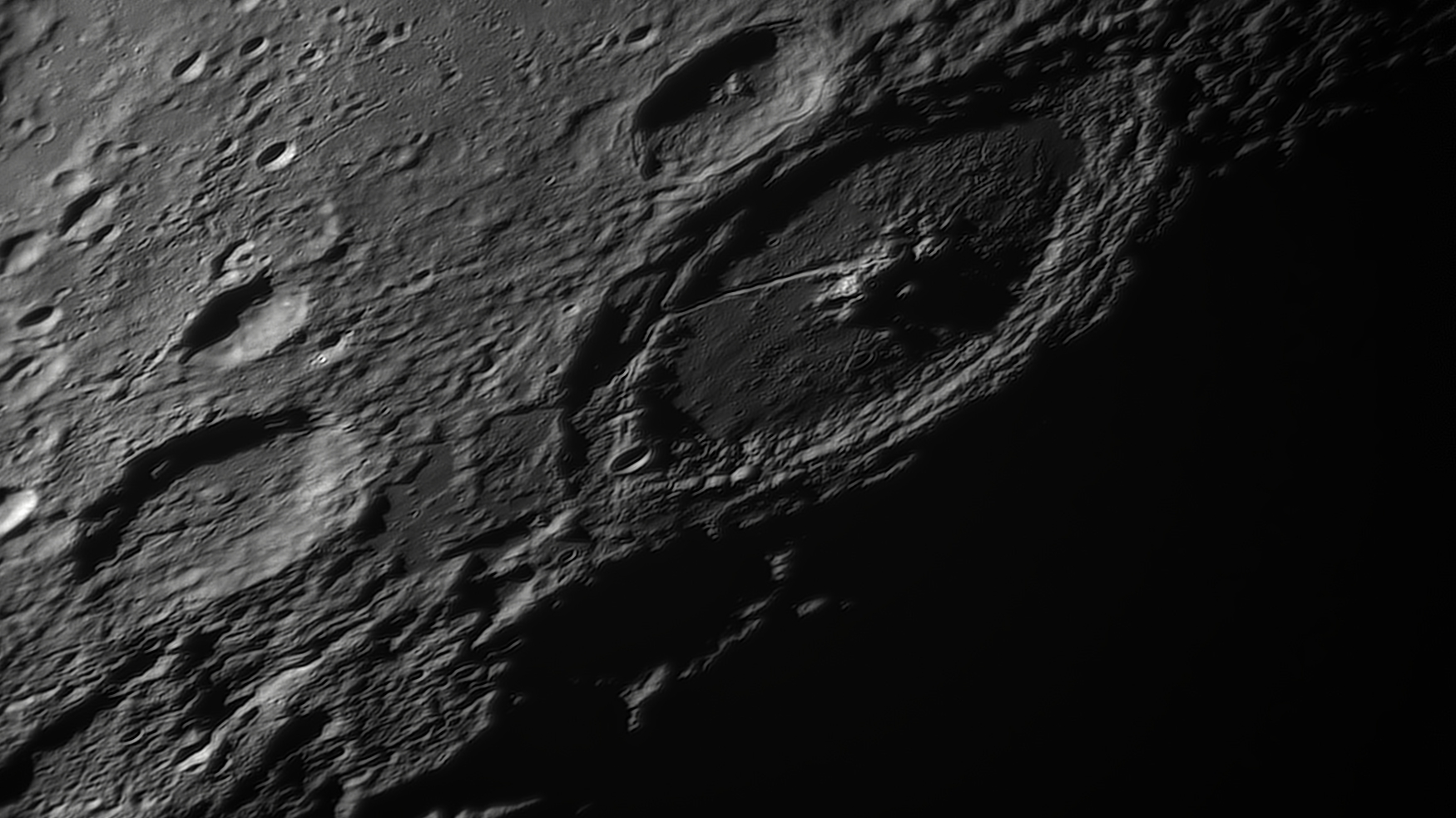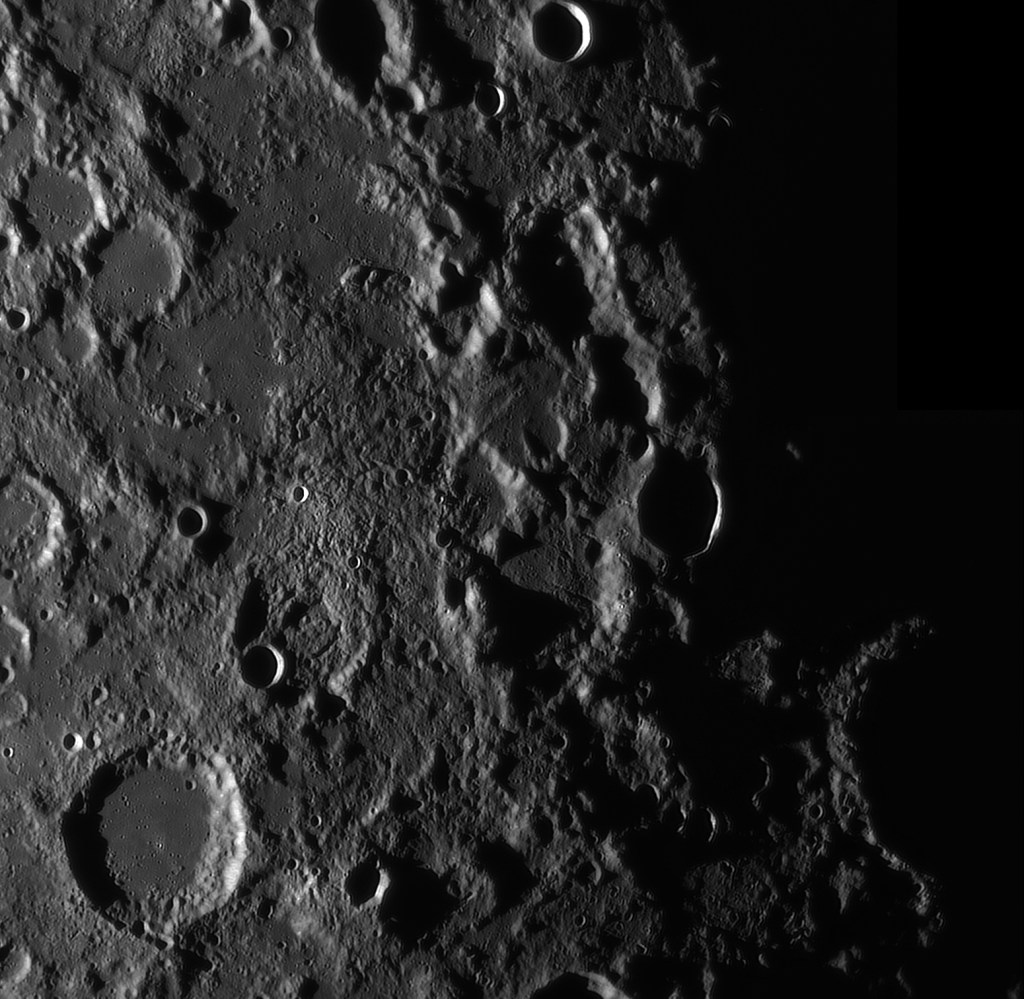 Drygalski, a 164 km wide crater located in the extreme Southern regions and thus only visible during favorable libration.