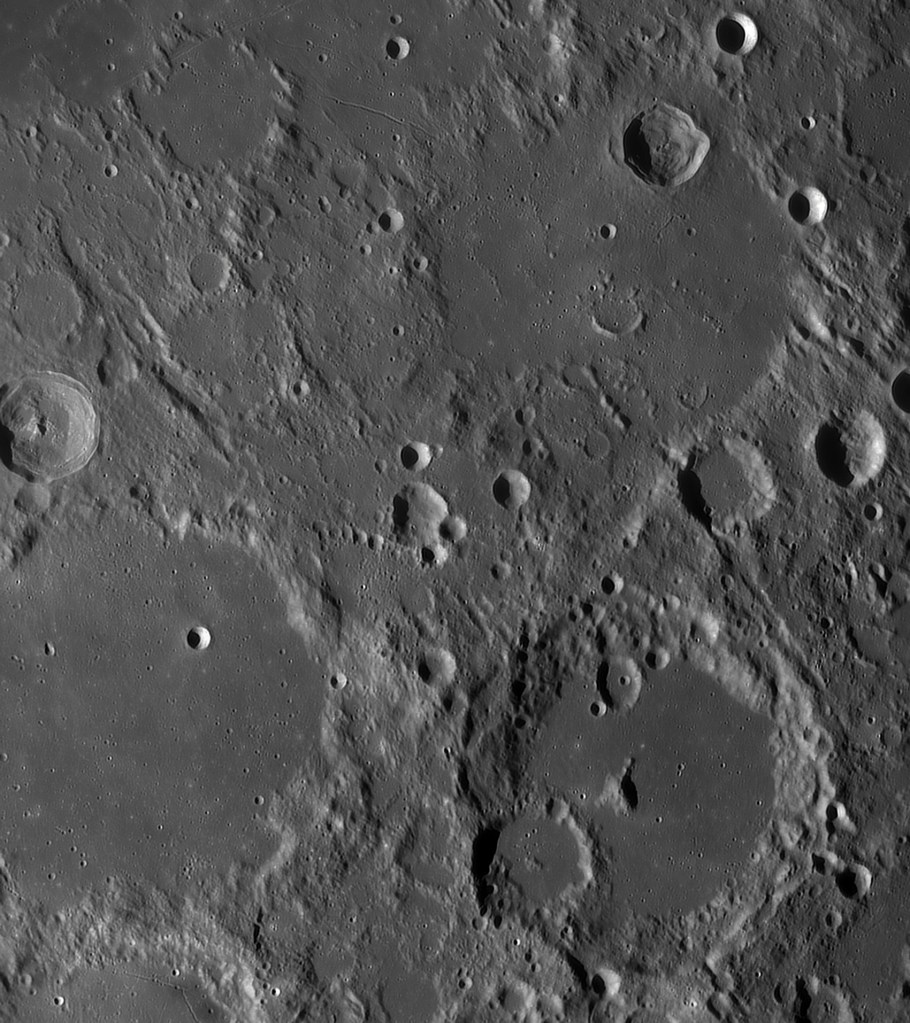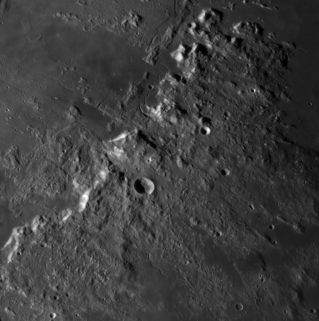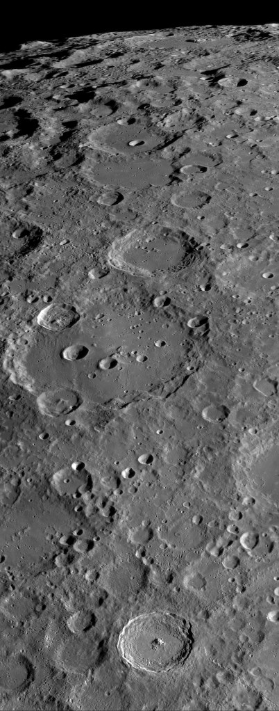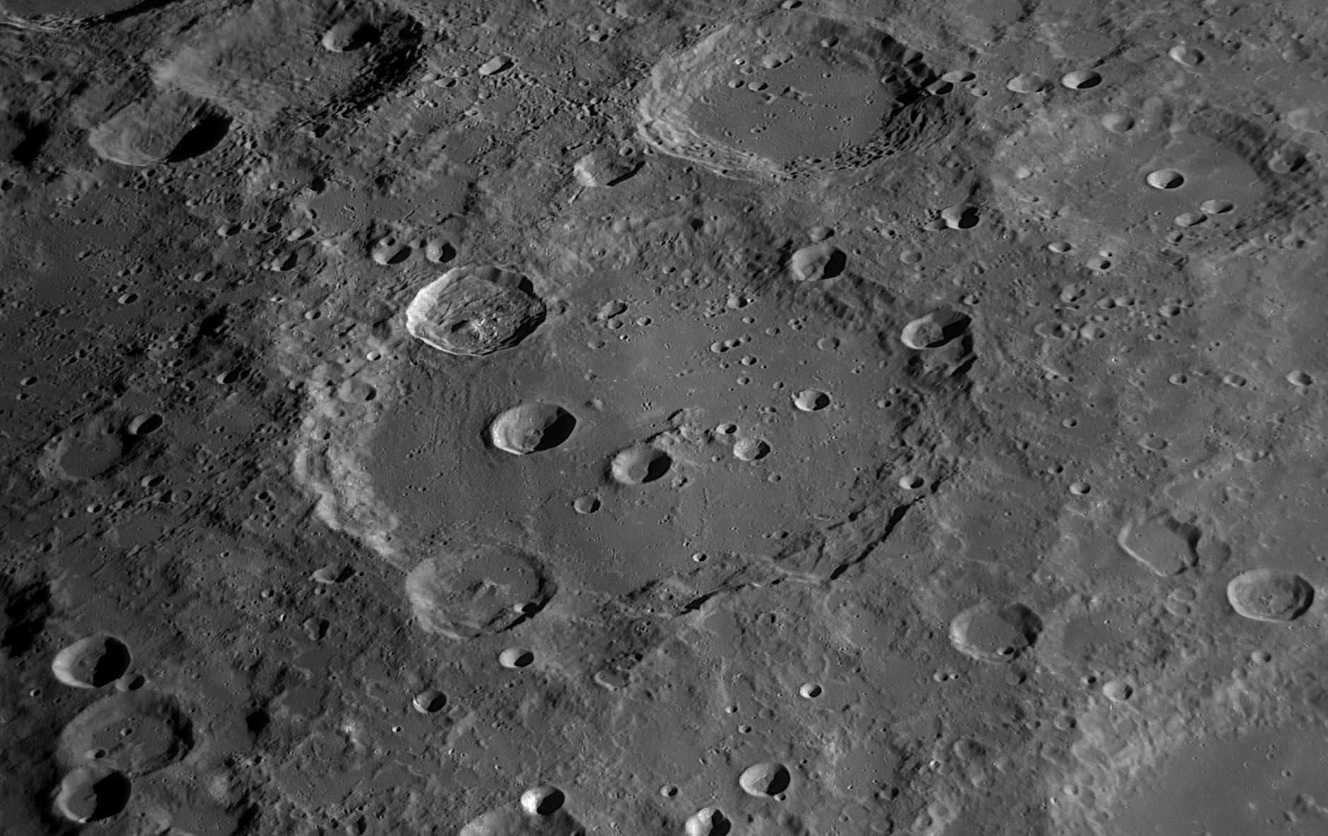 Drygalski, a 164 km wide crater located in the extreme Southern regions and thus only visible during favorable libration.