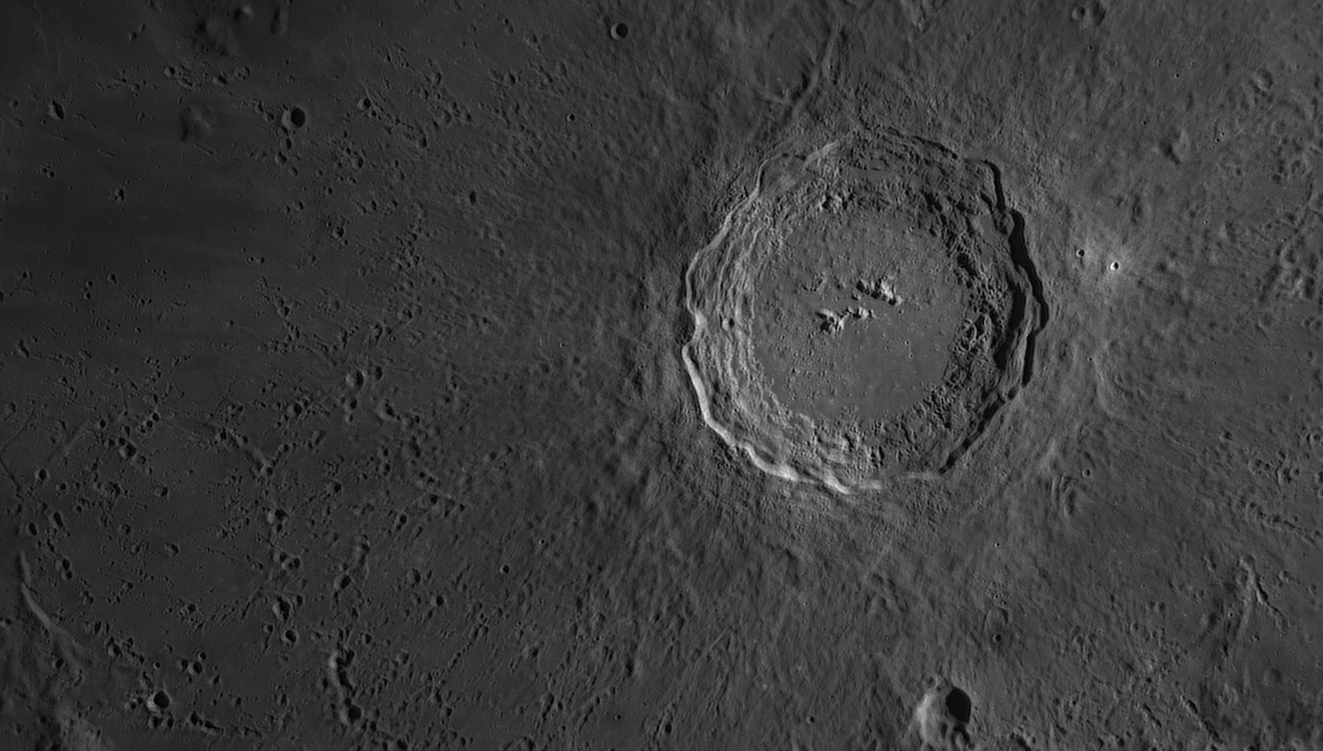 Reprocessed image of Copernicus crater from October 21, 2019. 355 mm Newton, ASI174MM, Green filter. Excellent seeing.
