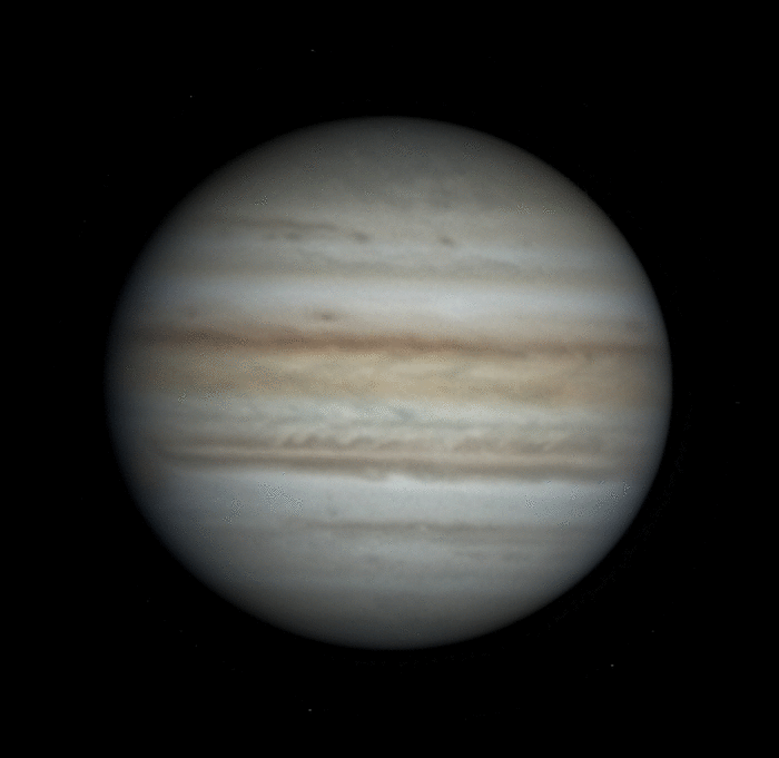 Jupiter in CH4 with 355 mm Newtonian and ASI290MM. CH4 filter courtesy of Constantin Sprianu. Filter: ZWO Methane band (CH4) filter 20 nm band pass, centered at 889nm: