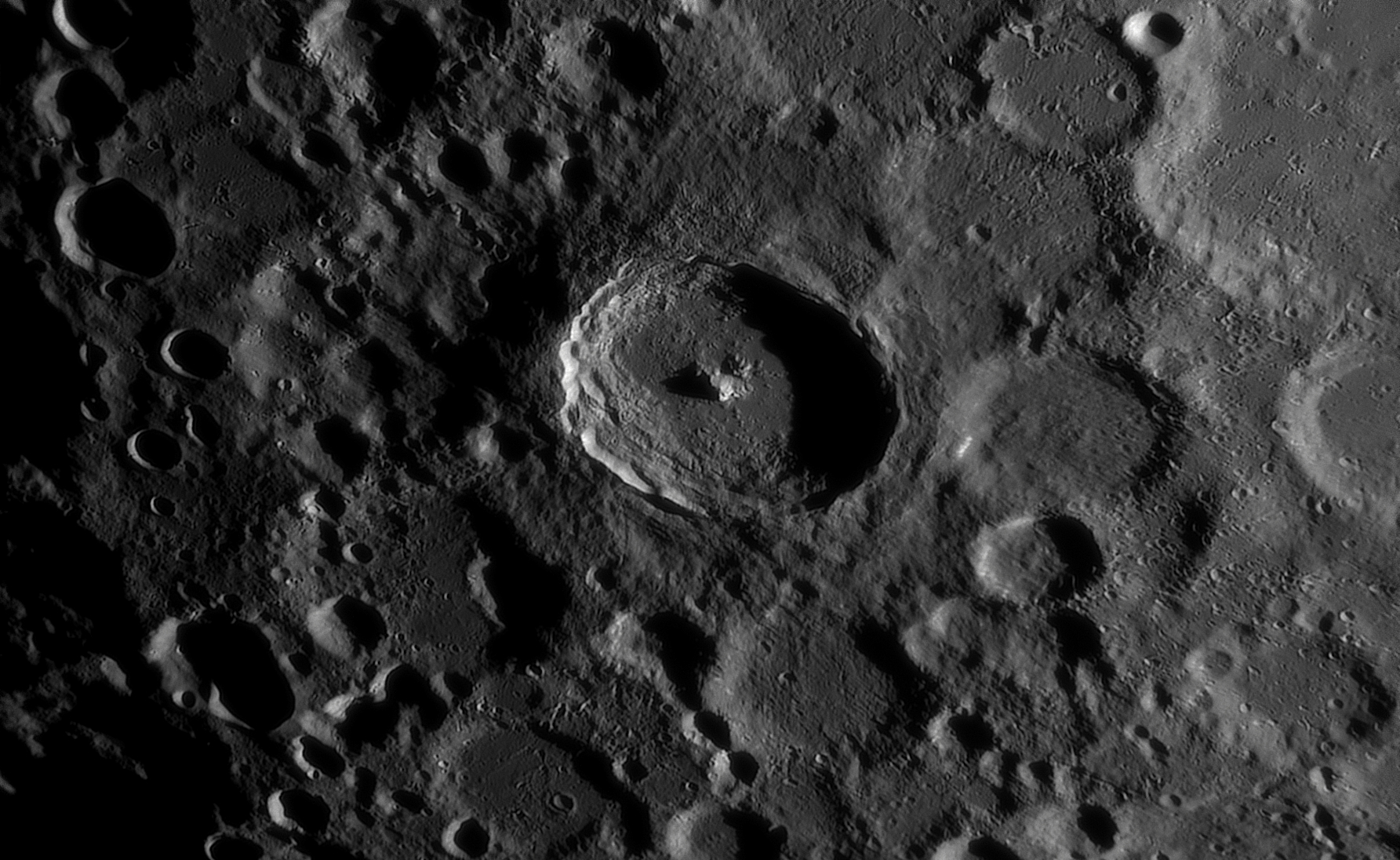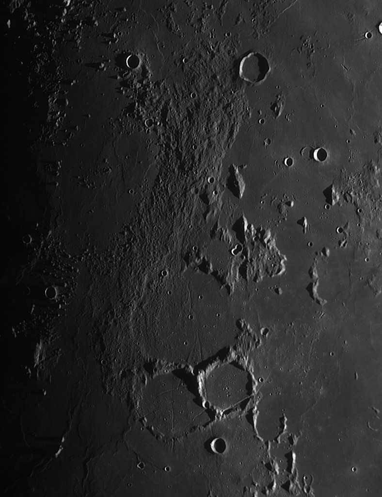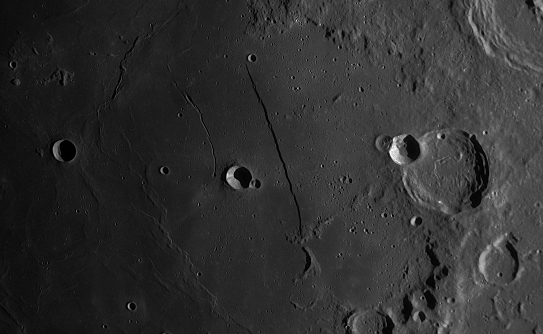A 6-image comparison of the well known lunar craters Alphonsus, Arzachel and Ptolemaeus under different illumination. All images are acquired in the last 4 years or so, with a 355 mm Newtonian with either Red or Green filters, and are resized to 50-70% from original.